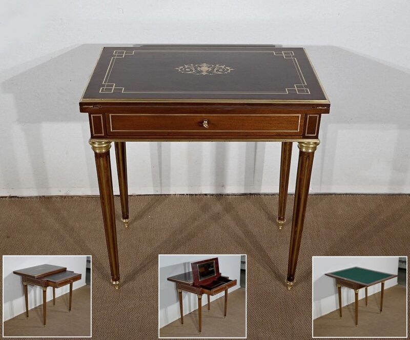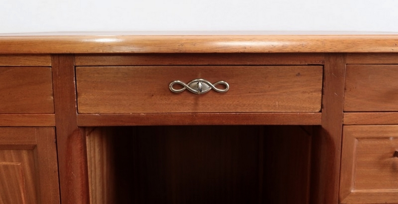 Très décoratif est fonctionnel, ce Bureau toute face est une pièce unique restaurée dans les règles de l’art dans notre atelier.
