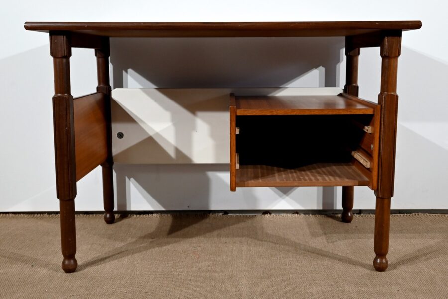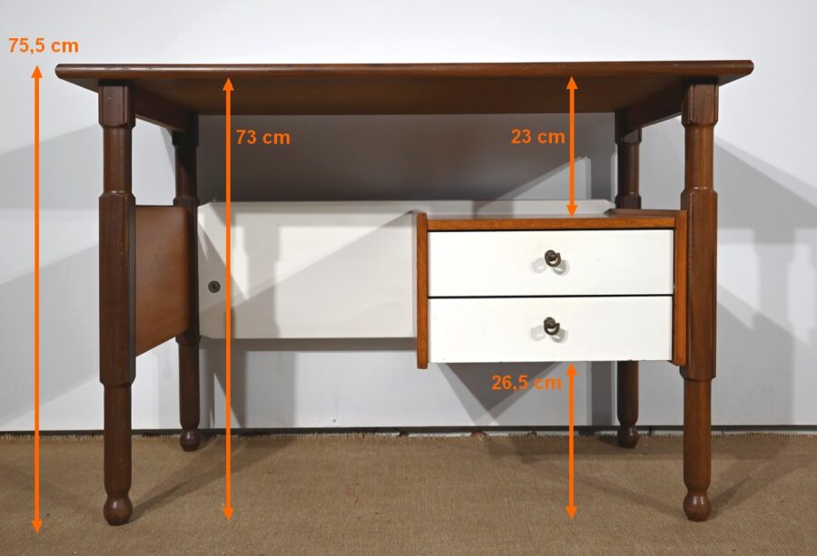 Ce bureau, pouvant être de milieu et entièrement démontable, séduira les amateurs de mobiliers vintage pour son petit dimensionnel. Il sera idéal en appartement ou dans une chambre d’enfant par exemple.
