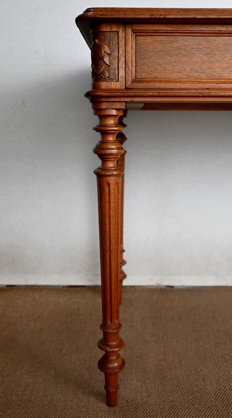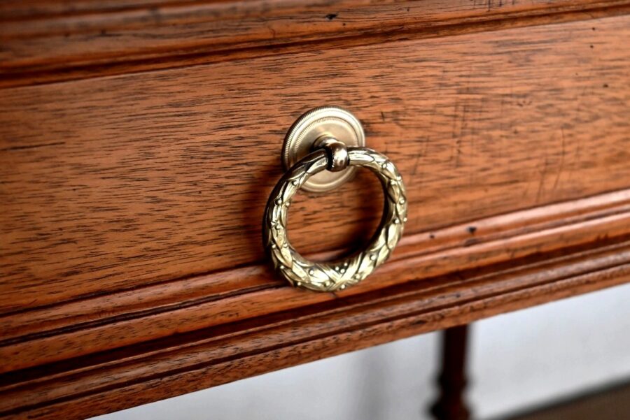 Excellent état. Finition uniquement cirée après décapage. Cuir refait à neuf.