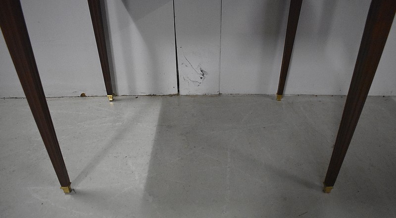L’ensemble repose sur quatre pieds Gainés, avec Cannelures également, se terminant par des Sabots Laiton