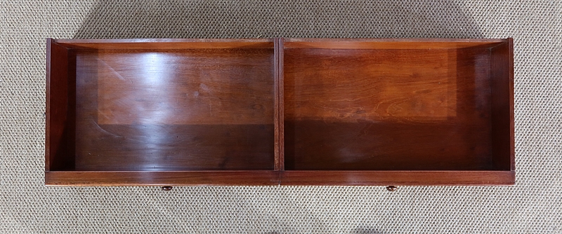 Les intérieurs de tiroirs, côtés et fond, sont en acajou massif.