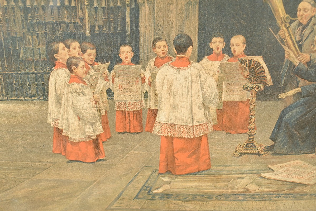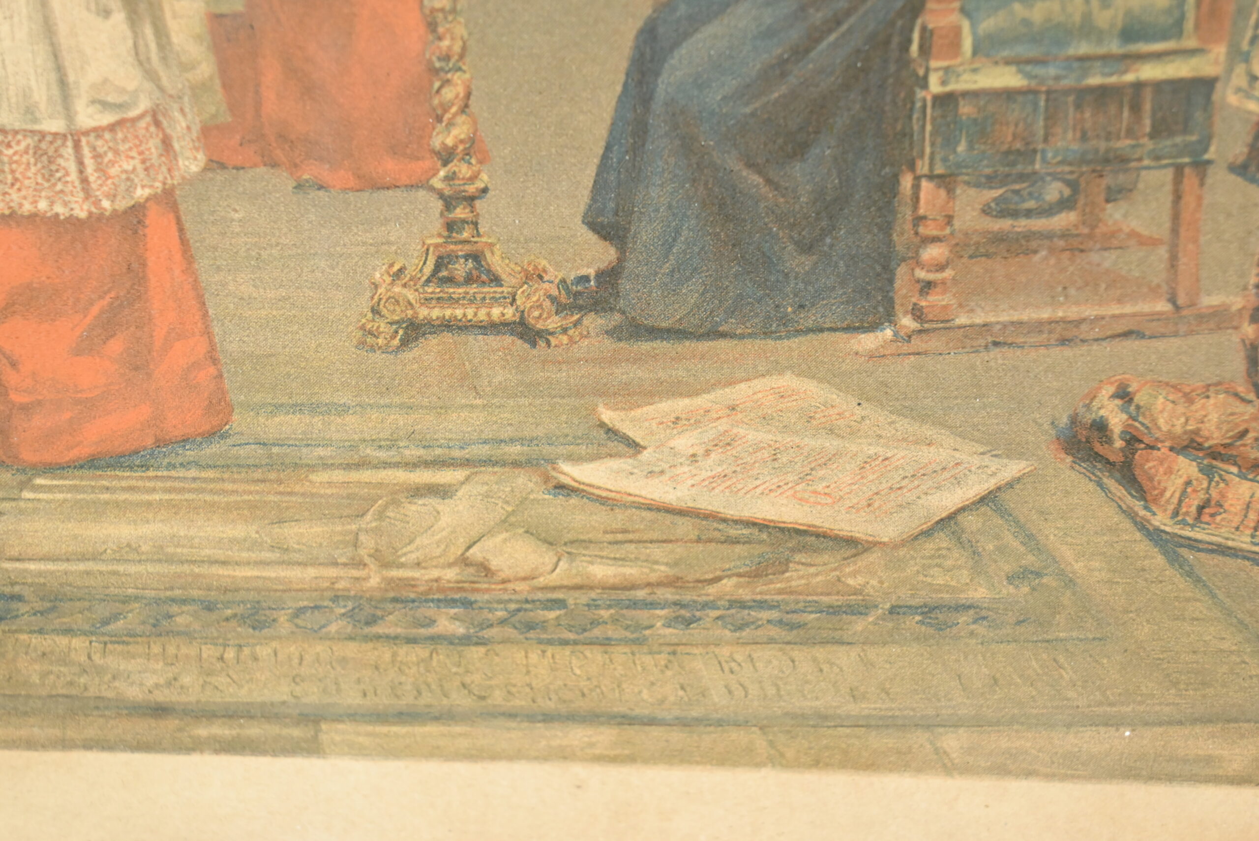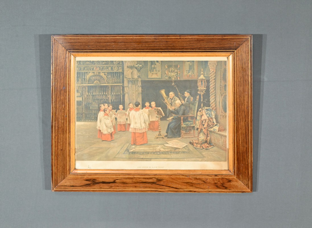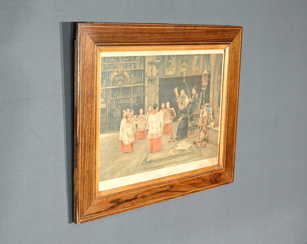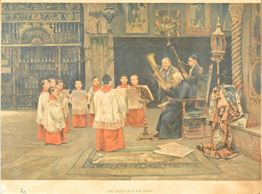 Estampe intitulée « Une Leçon de Plein Chant » tirée de l’œuvre de José Gallegos Y Arnosa (1853-1917).