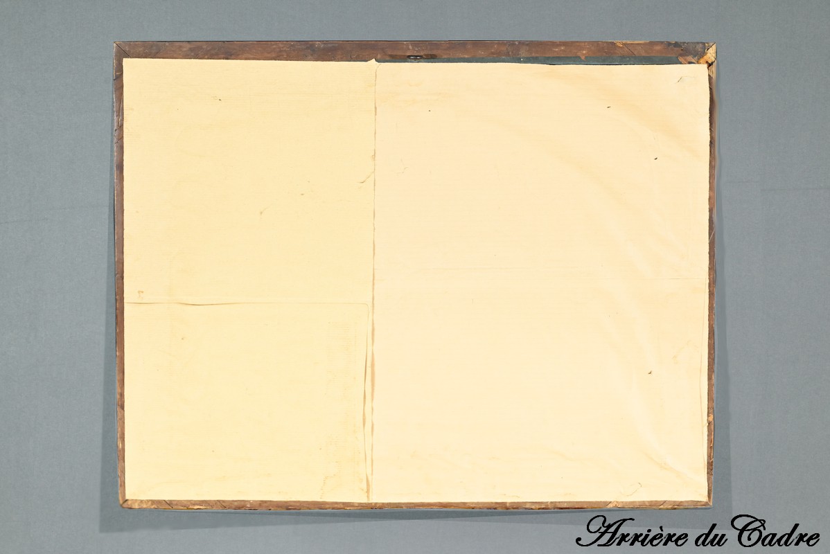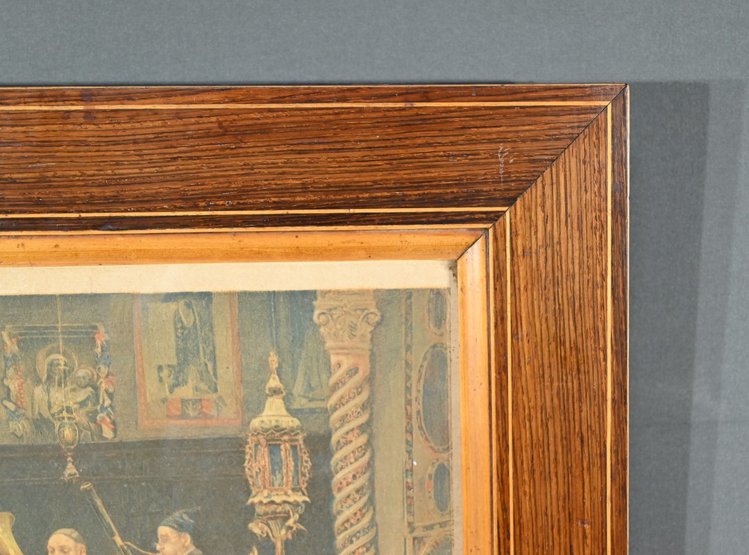 Cette estampe, signée en bas à droite JGallegos Paris 1883, est mis en valeur par un cadre en placage de palissandre souligné par un double filet de citronnier.