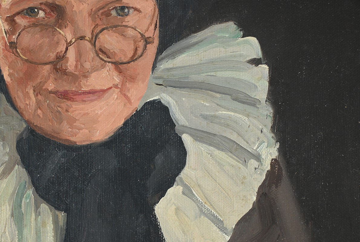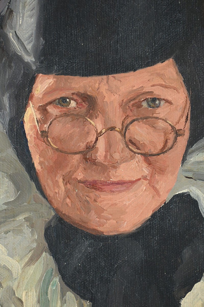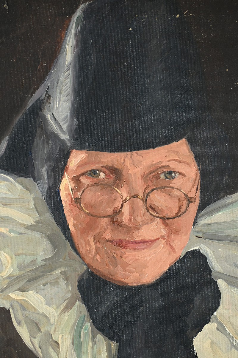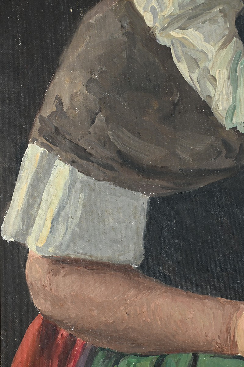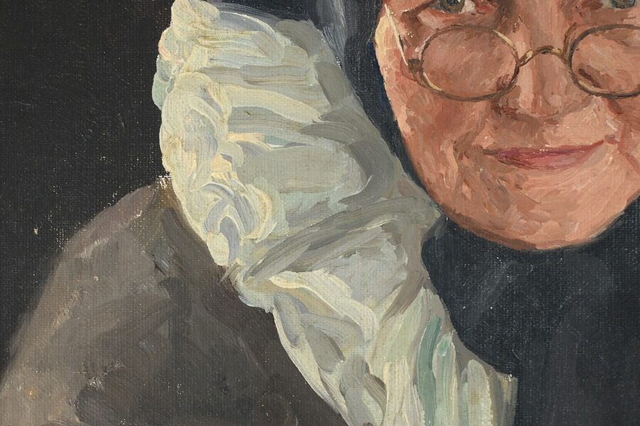 Huile sur toile de l’Artiste Artur Markowicz (1872-1934) représentant une femme âgée coiffée et vêtue d’un costume traditionnel polonais. Assise, son visage bienveillant face à l’artiste, elle tient un livre ouvert posé sur ses genoux. L’artiste connu pour ses portraits intimistes, arrive a retranscrire la personnalité généreuse de cette femme. L’œuvre est signée en bas à droite.