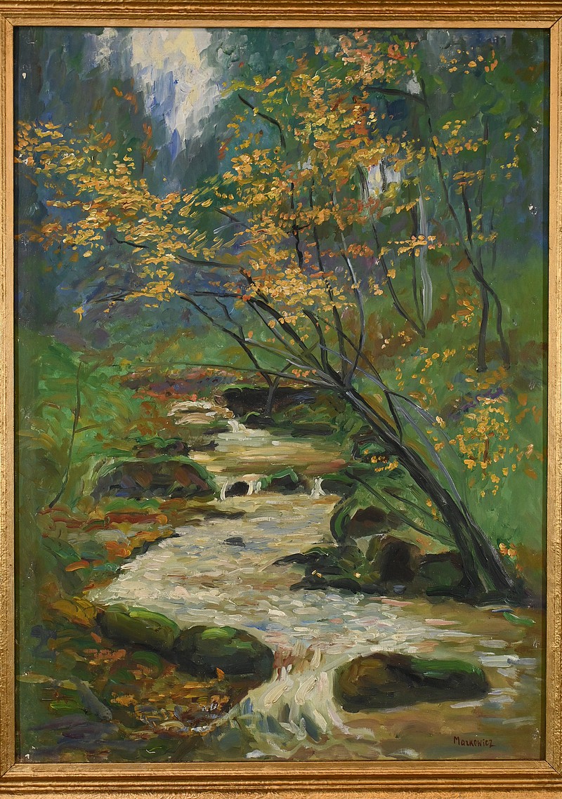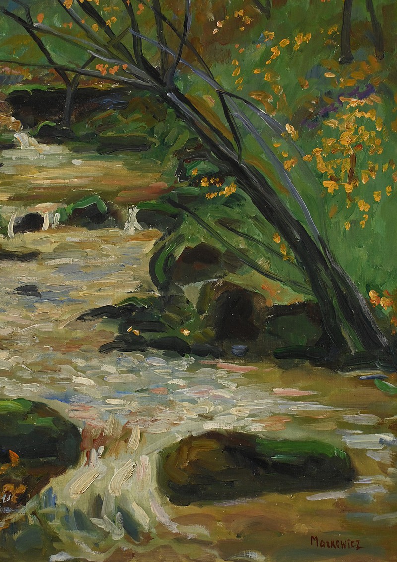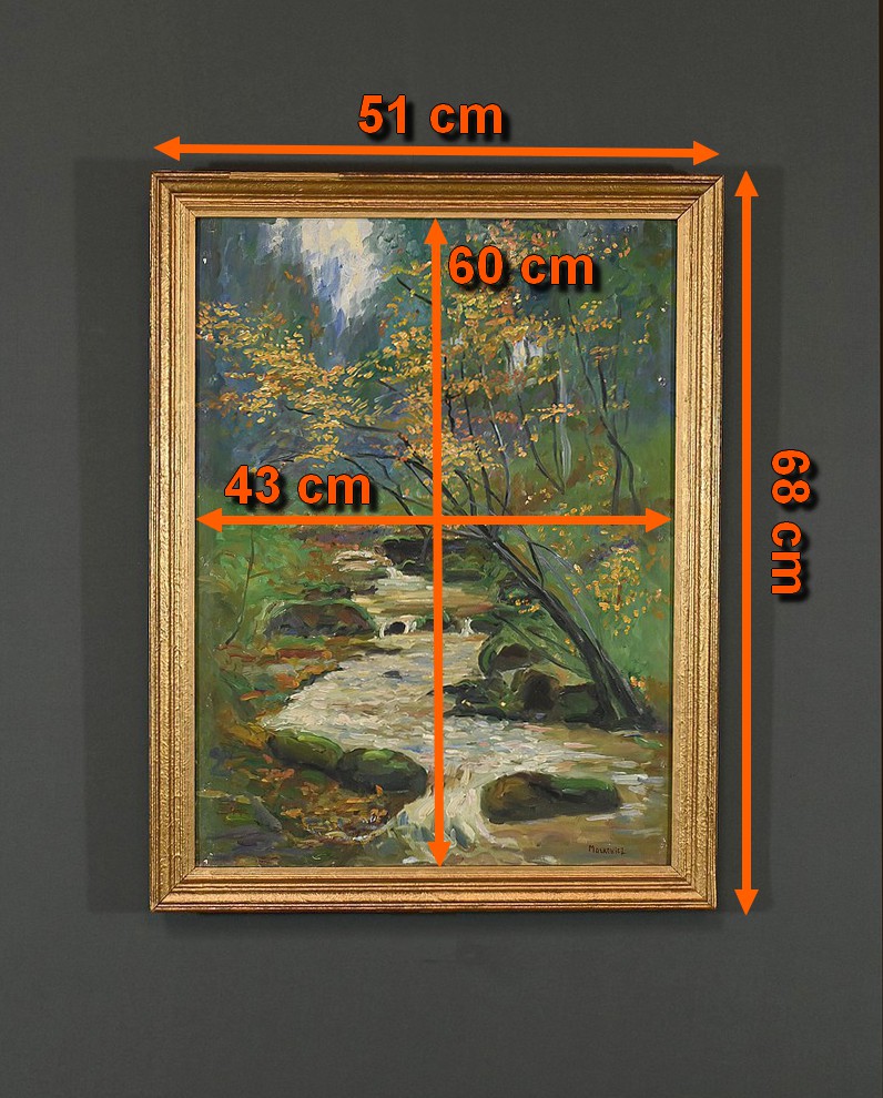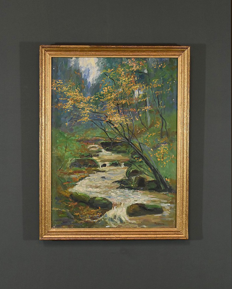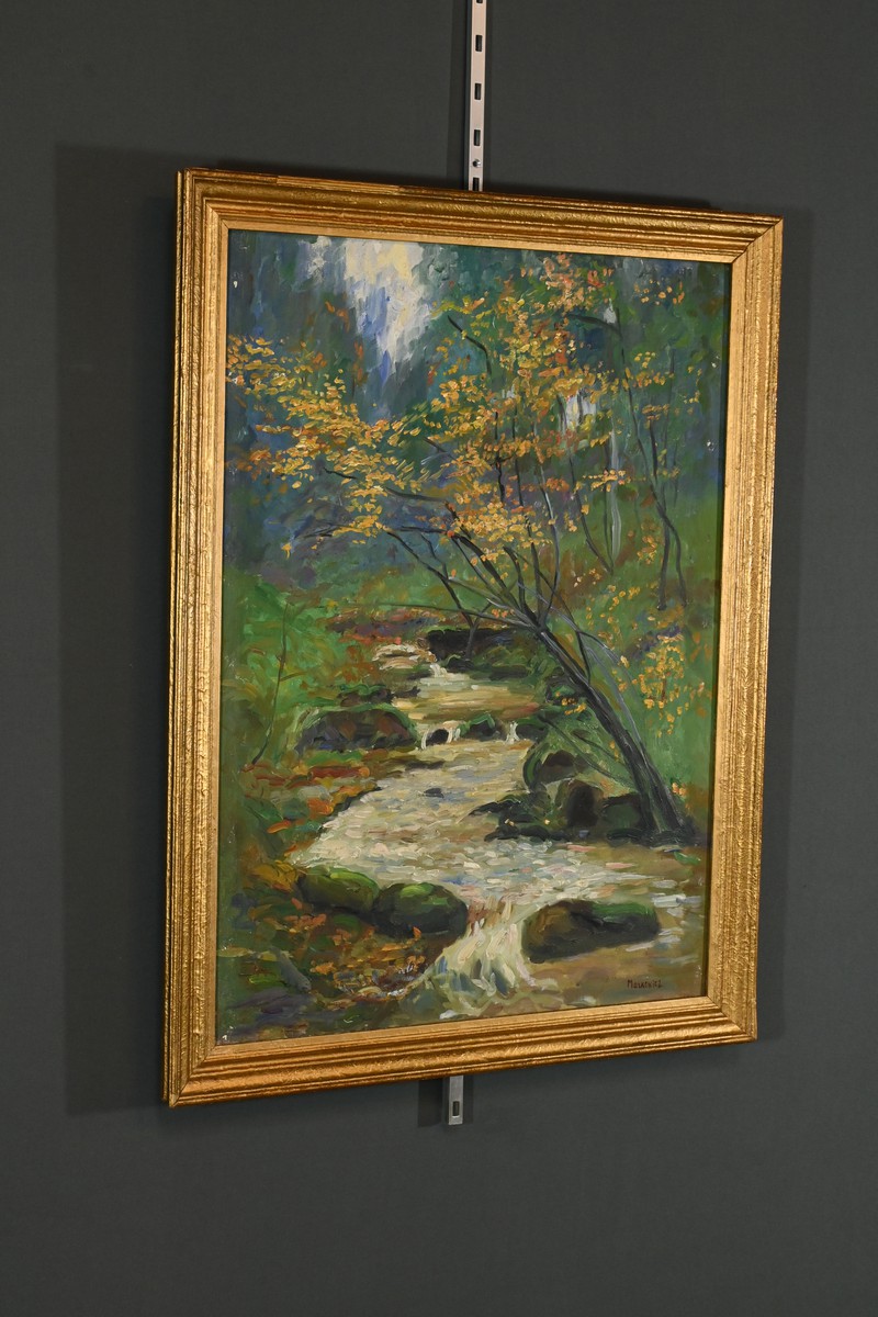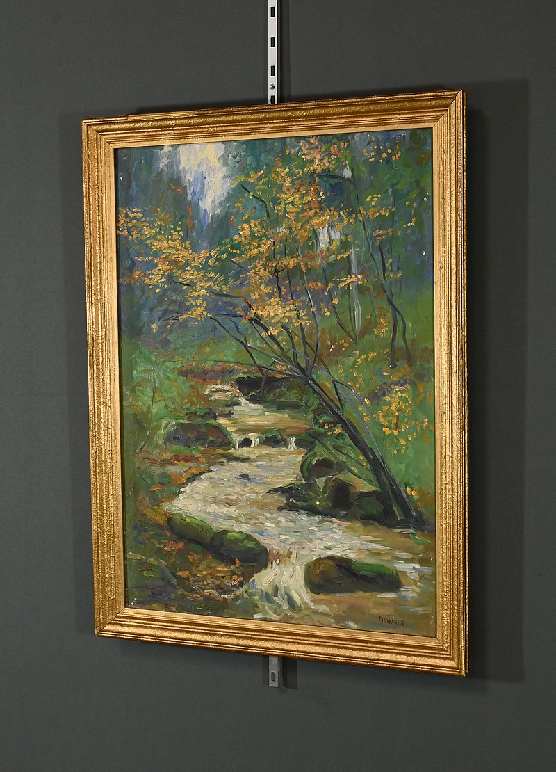 Huile sur Toile « Ruisseau en forêt », signée A. Markowicz – Début XXe