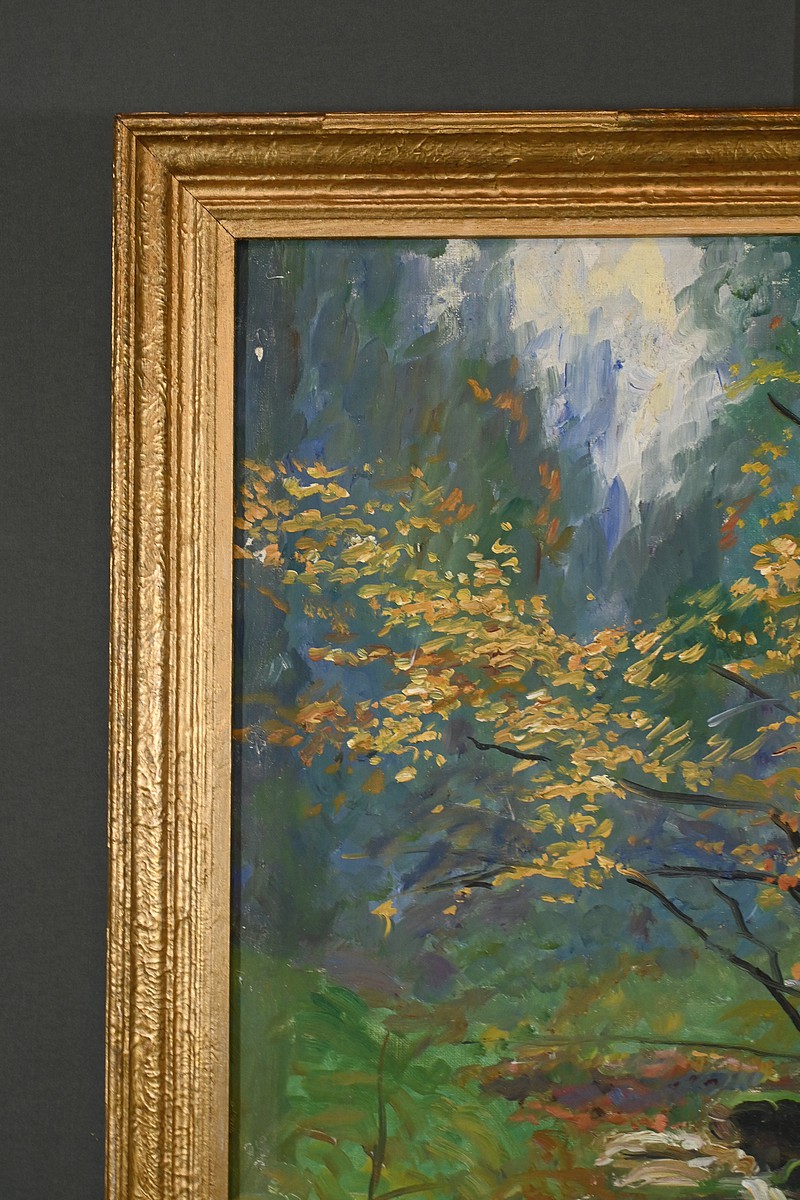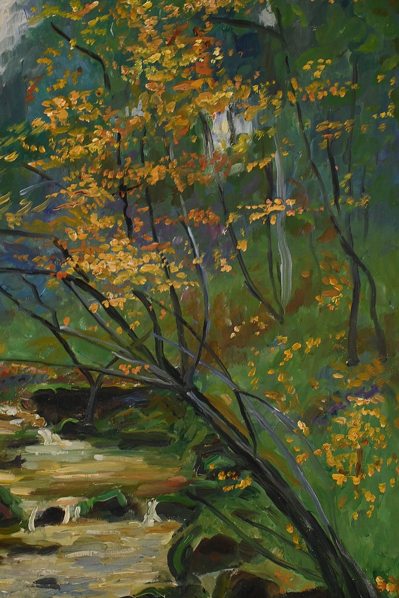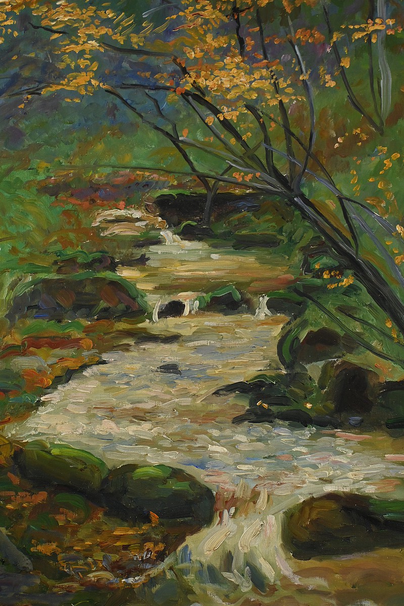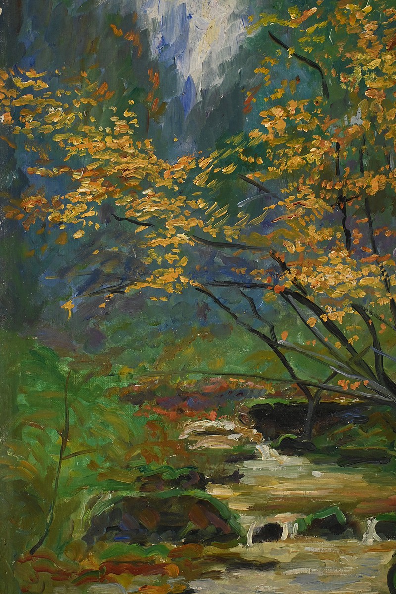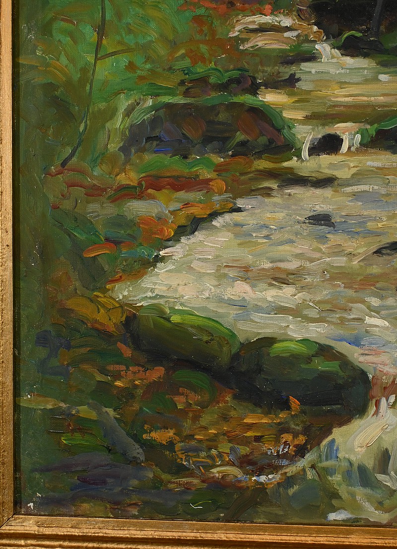 Huile sur Toile « Ruisseau en forêt », signée A. Markowicz – Début XXe