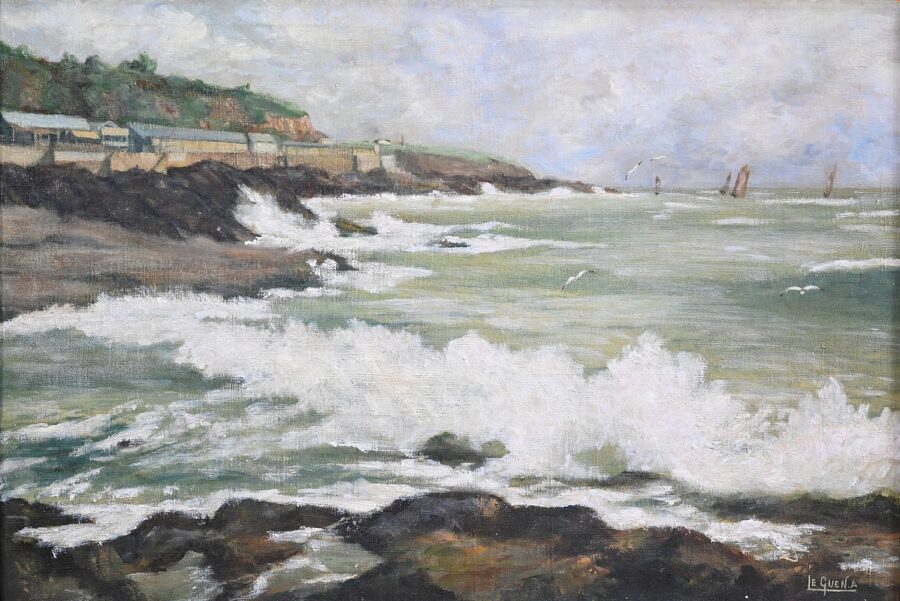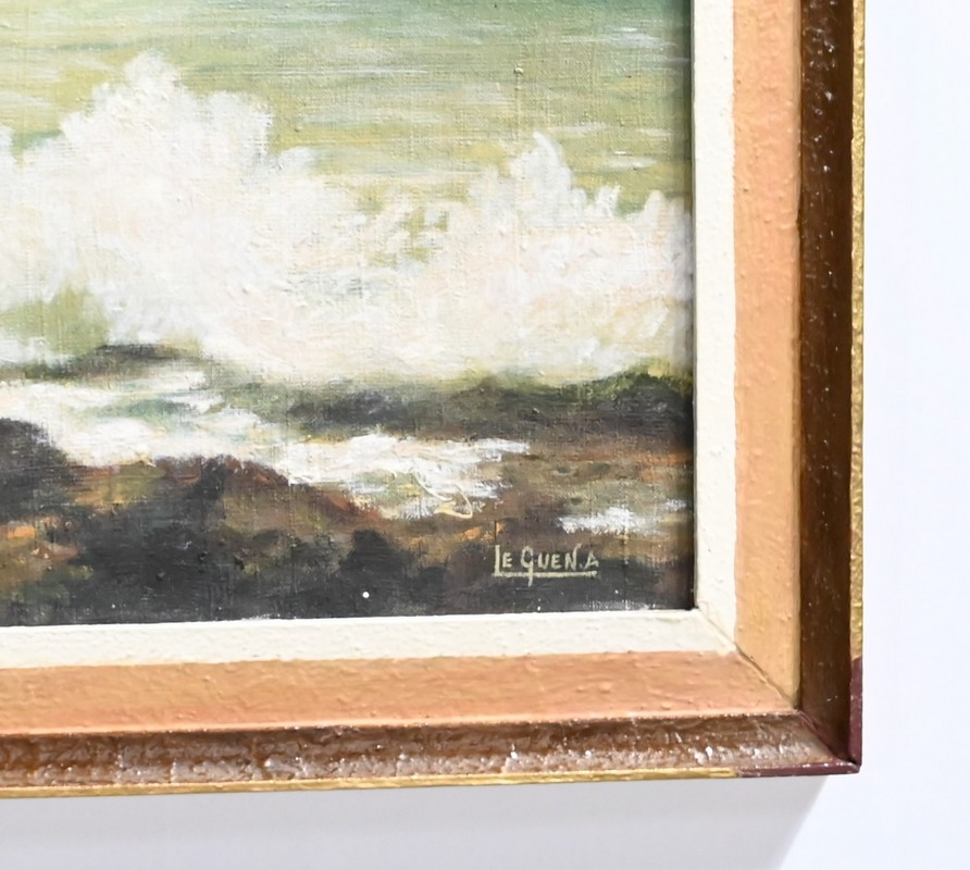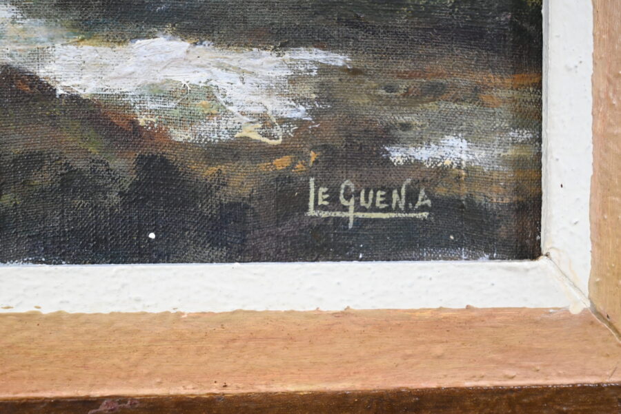 Huile sur toile signée André Le Guen. Ce Breton né à Carhaix en 1929 peint depuis l’âge de 16 ans. Passionné de voyage il silionne l’Europe et couche les paysages qu’il croise.