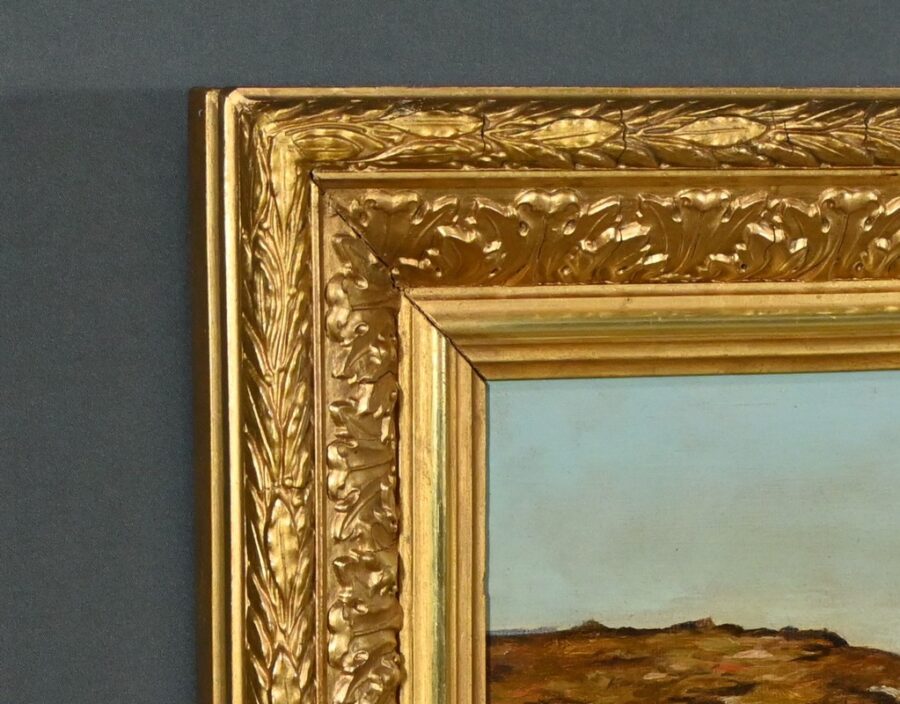 Le cadre doré richement orné met en valeur la beauté et la subtilité de cette peinture, en faisant une pièce de collection précieuse pour tout amateur d’art ou collectionneur.