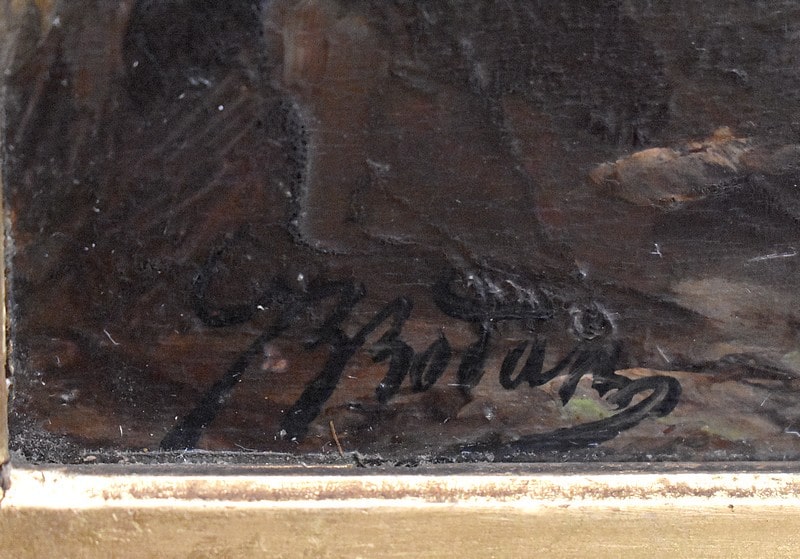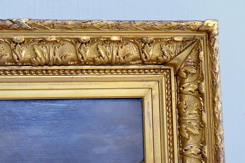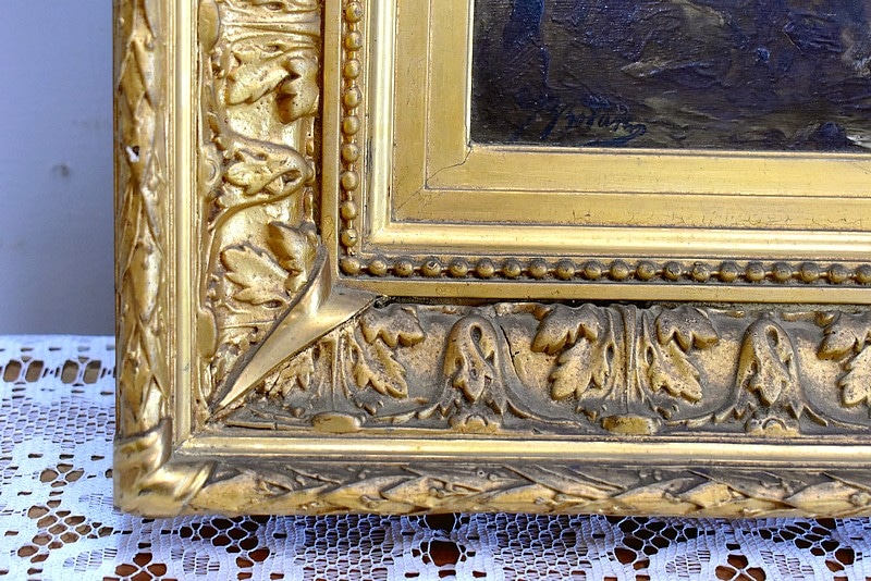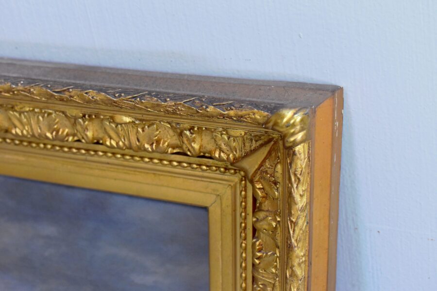 Il est encadré d’un important cadre en bois doré sculpté et mouluré, d’une largeur de 8,5 cm.