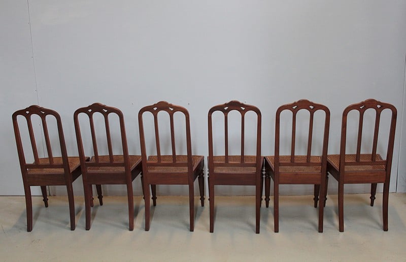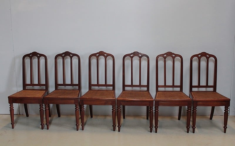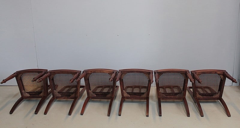 Suite de 6 chaises Louis-Philippe à ceinture en acajou de Cuba.