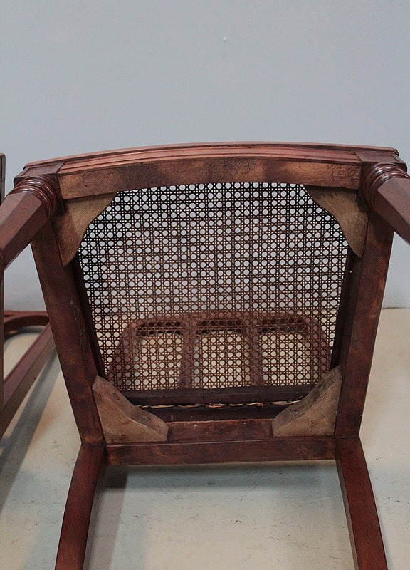 Elles reposent sur des pieds avants tournés à pans coupés octogonaux et des pieds arrières ‘sabre’.