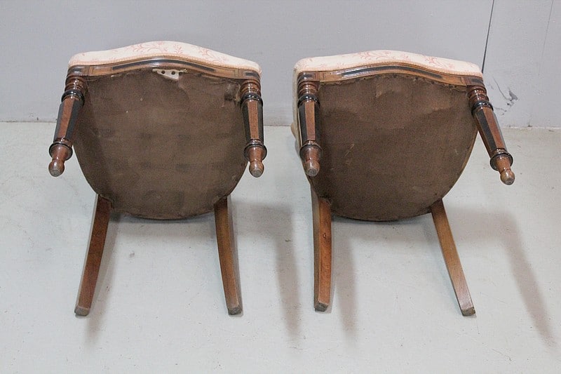 Paire de petites chaises de style Napoléon III en Noyer massif.