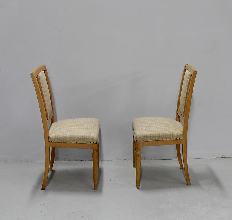 Paire de petites chaises en Hêtre décoloré, aux lignes épurées.