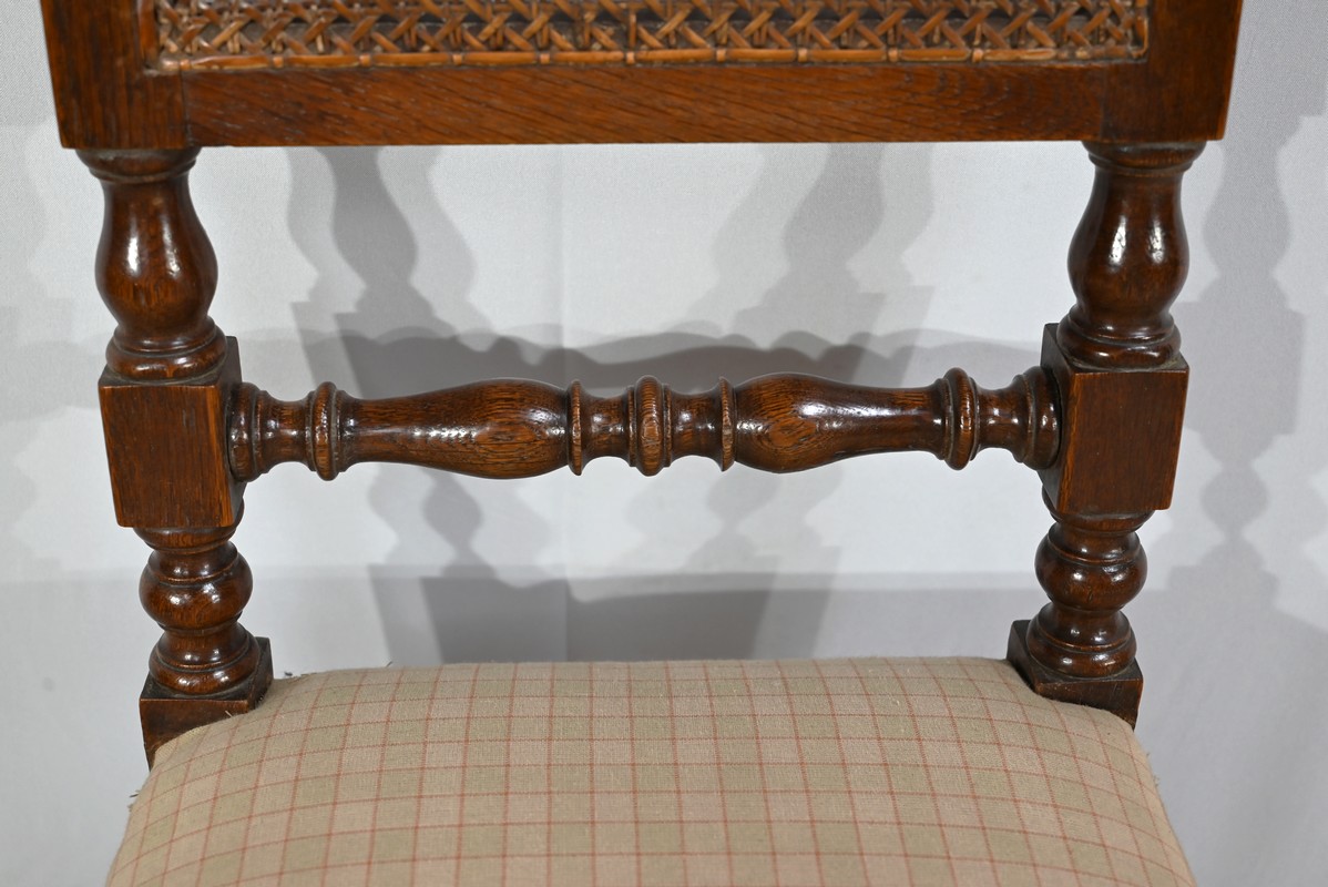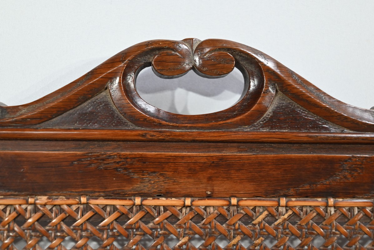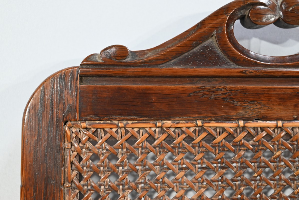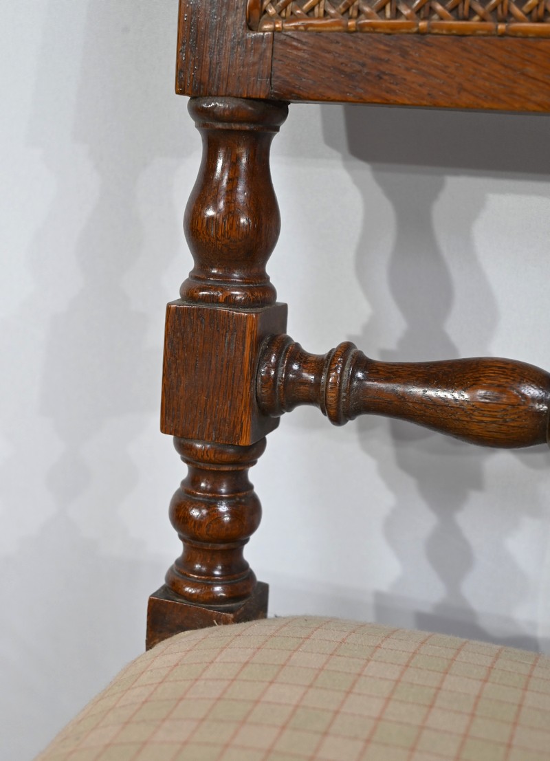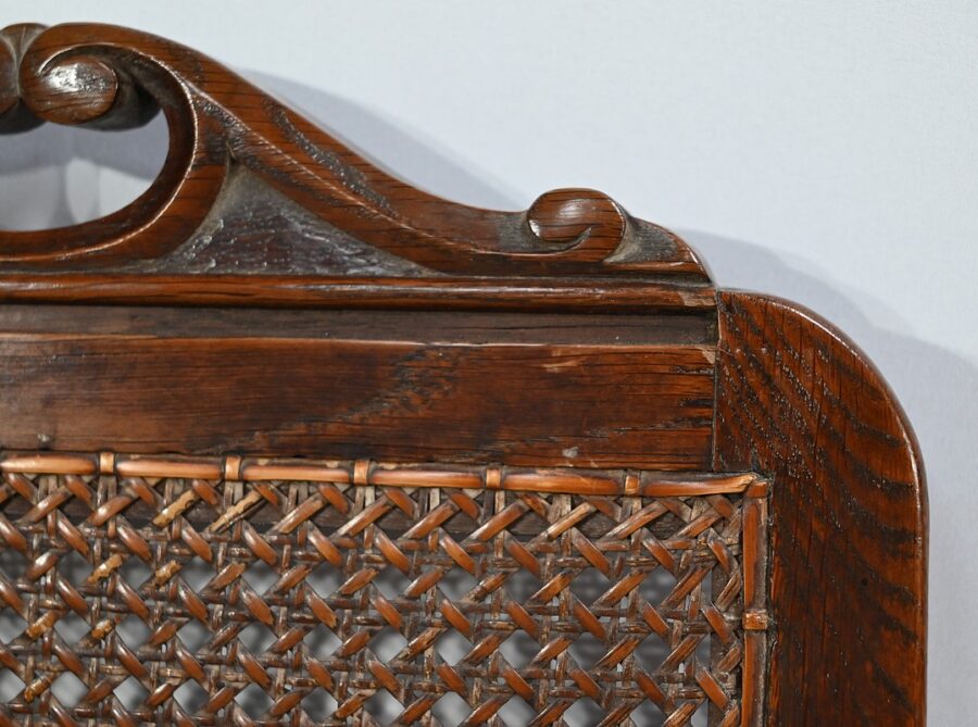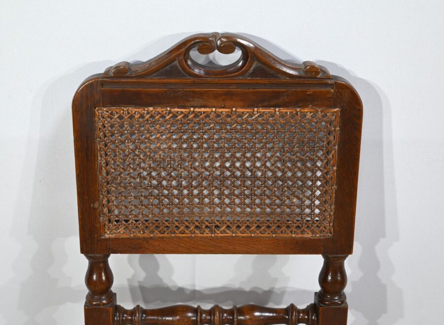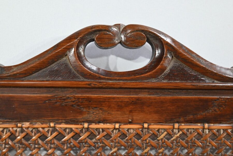 Le dossier est tourné et aéré avec barreaudage tourné en partie basse et cannage en partie haute.