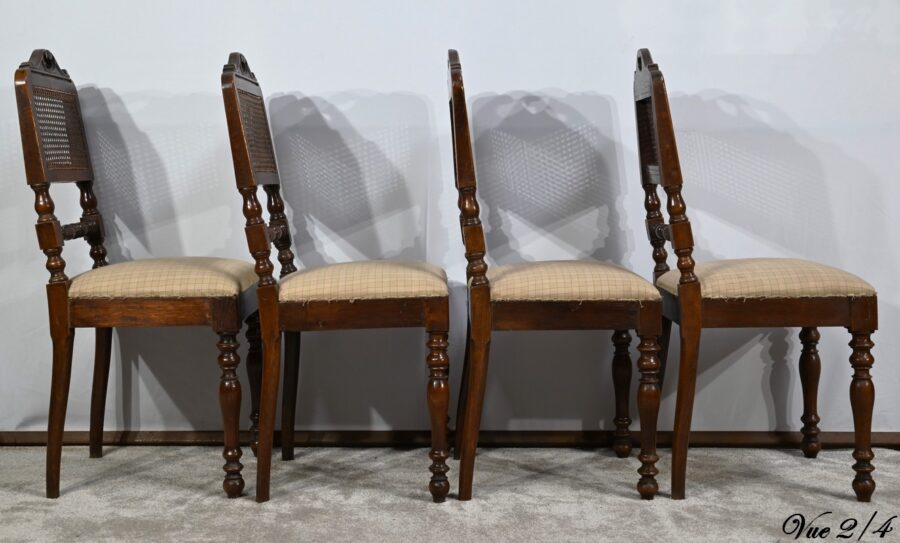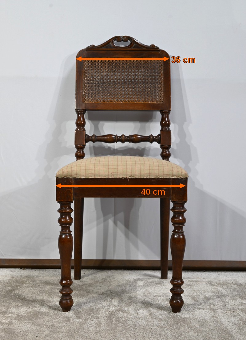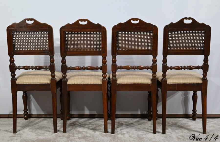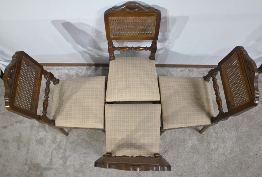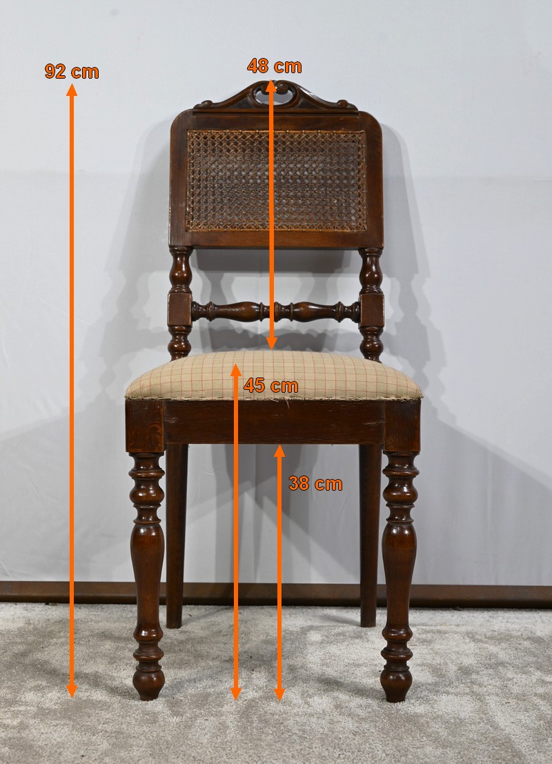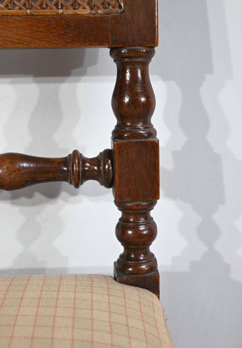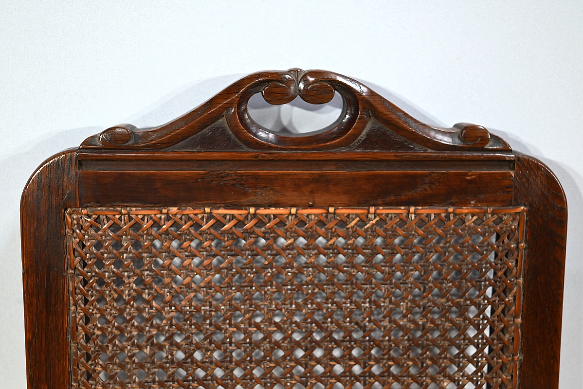 Le dossier est tourné et aéré avec barreaudage tourné en partie basse et cannage en partie haute.