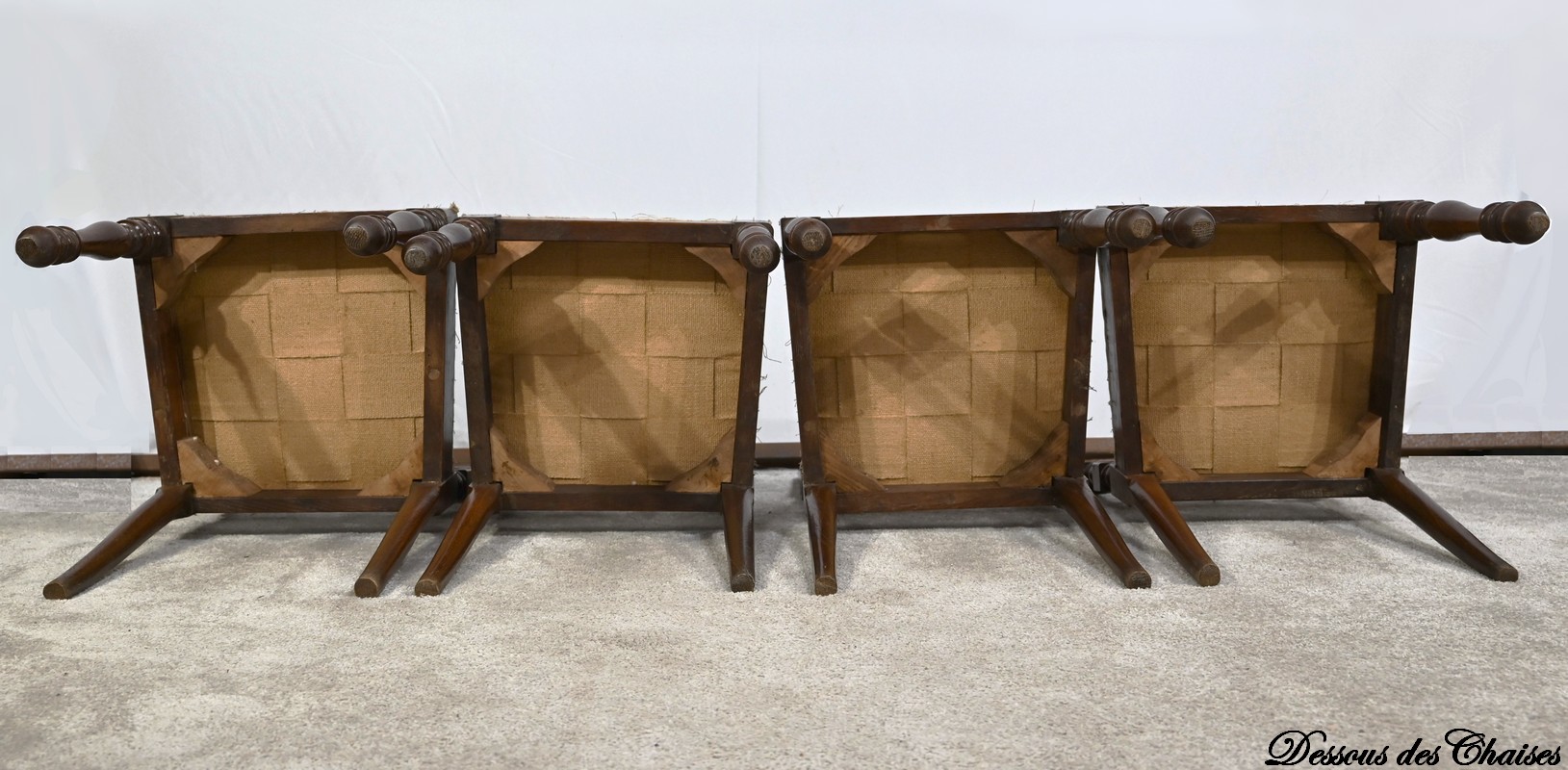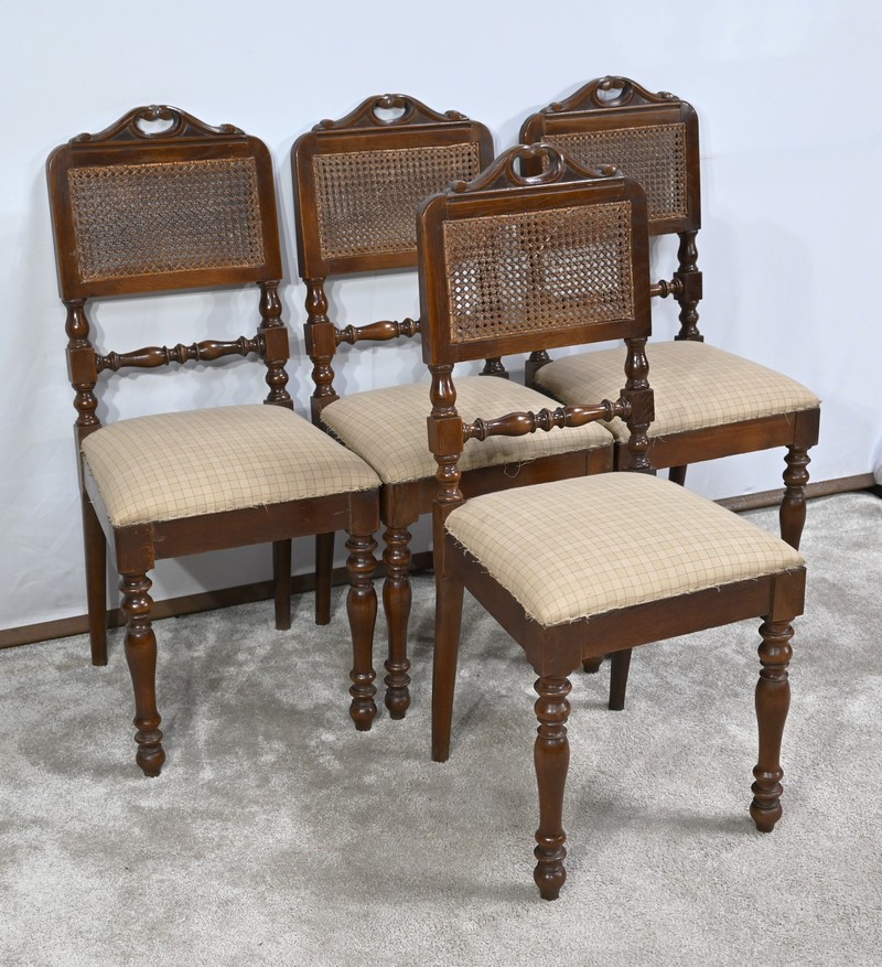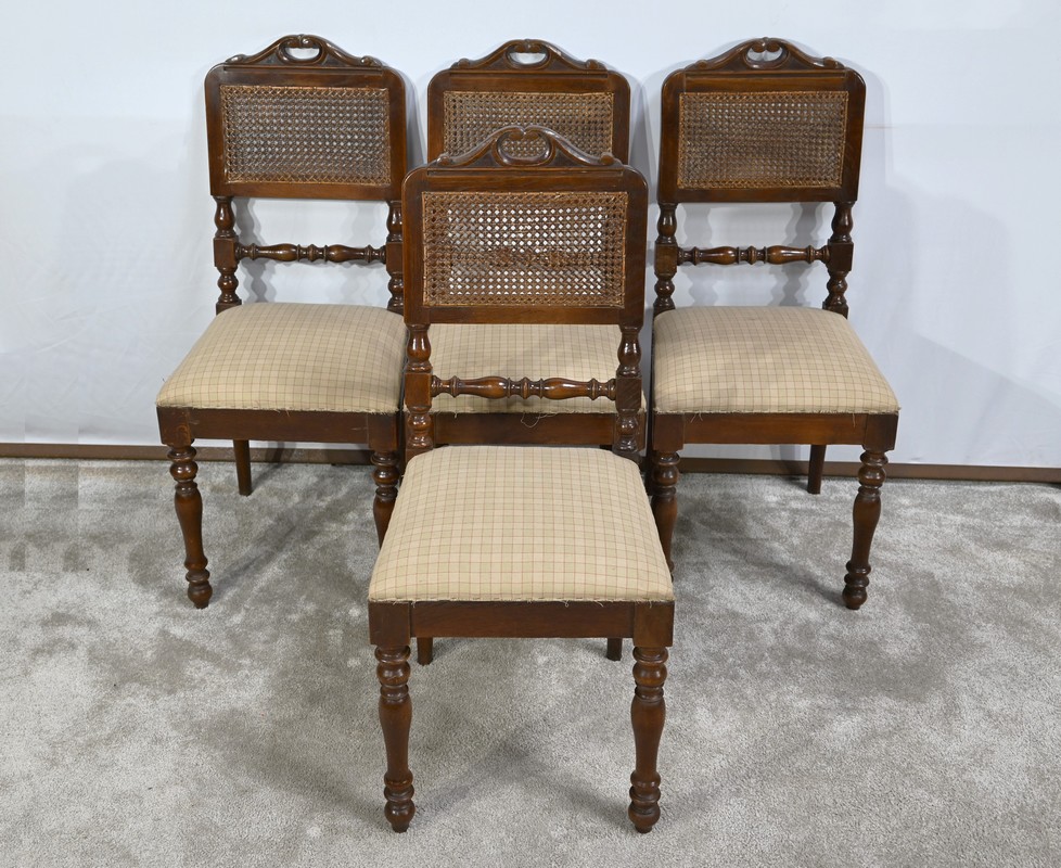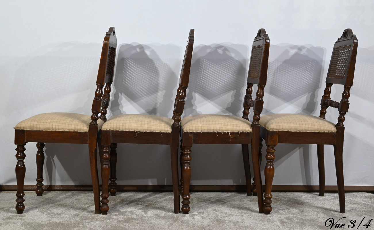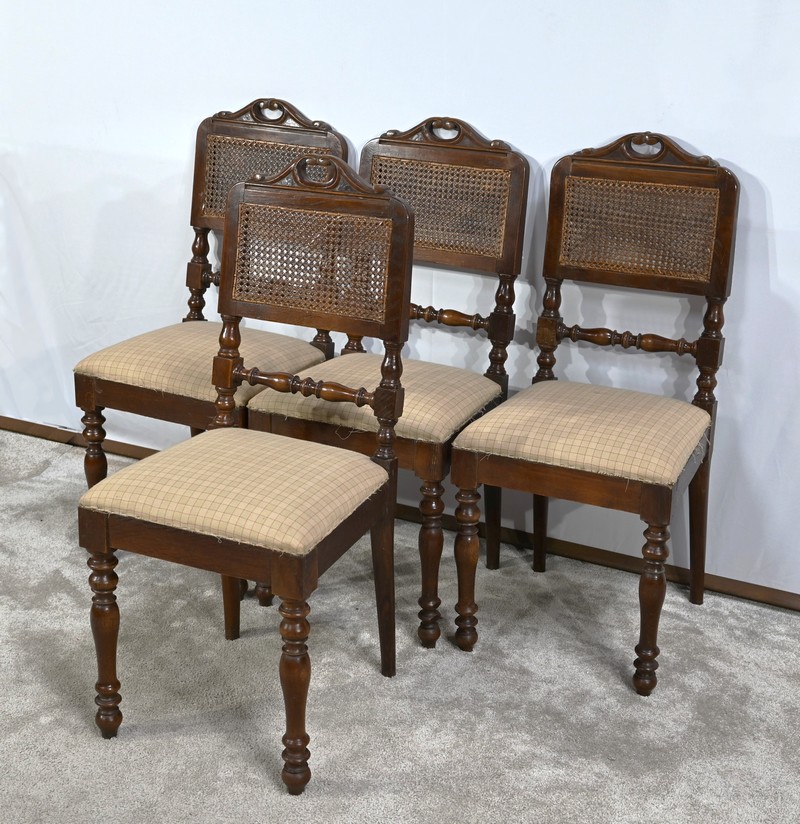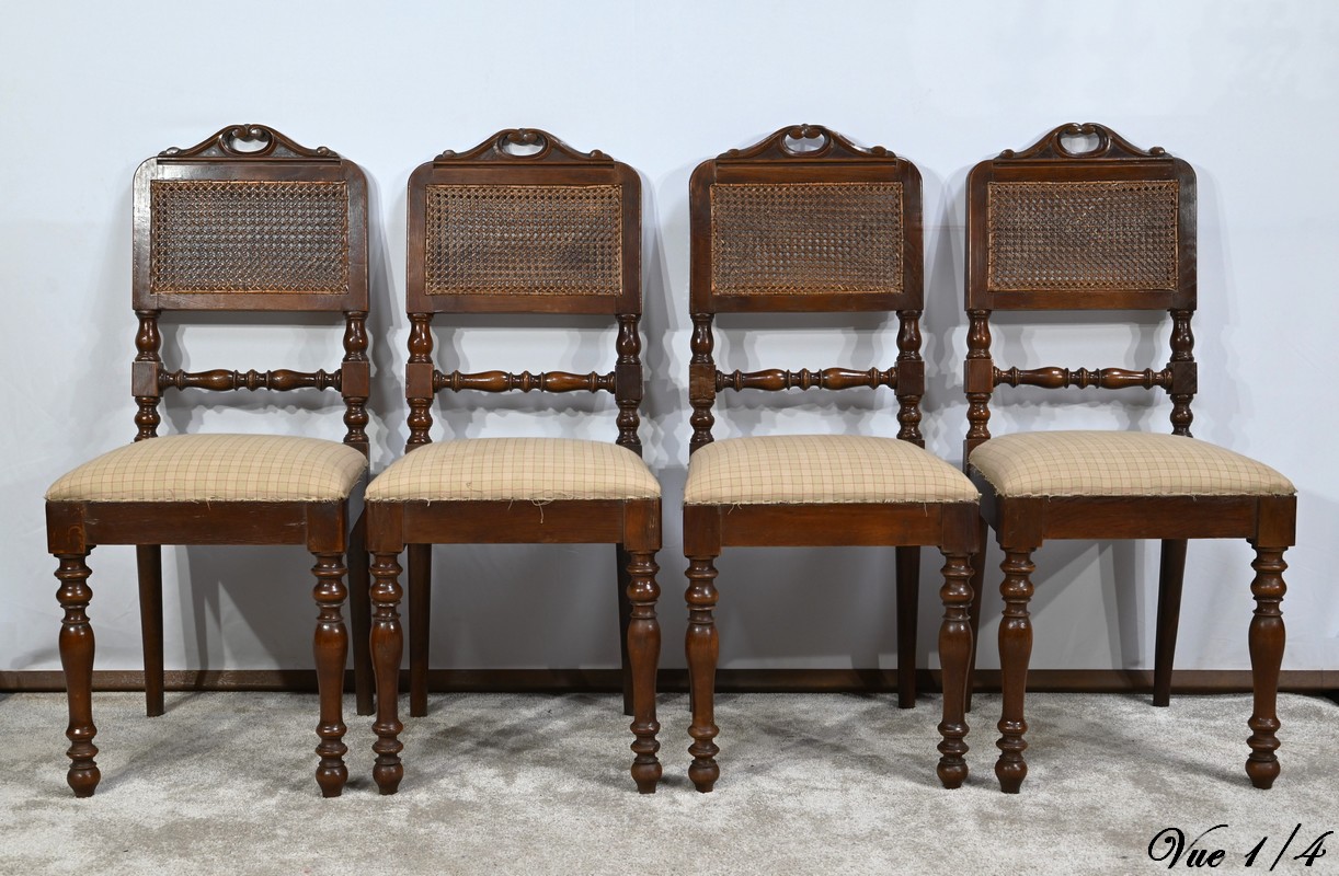 Le dossier est tourné et aéré avec barreaudage tourné en partie basse et cannage en partie haute.