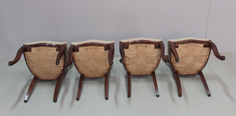 Elles reposent sur 2 pieds avant galbés et sculptés et 2 pieds arrières ‘sabre’.