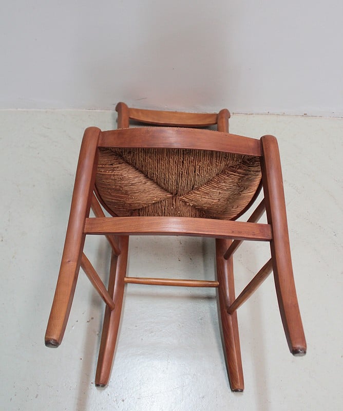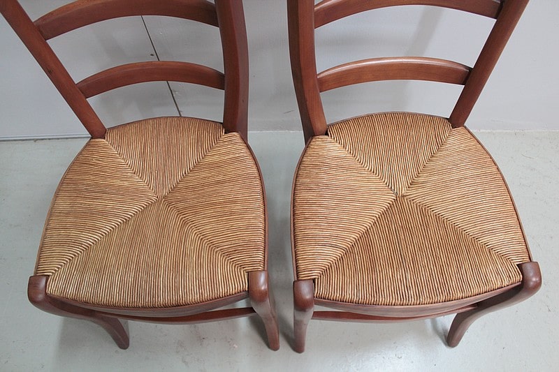 Dossier à 2 barrettes, assises paillées et pieds sabre (avants et arrières)