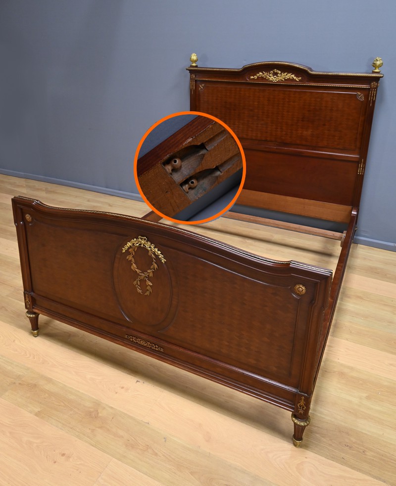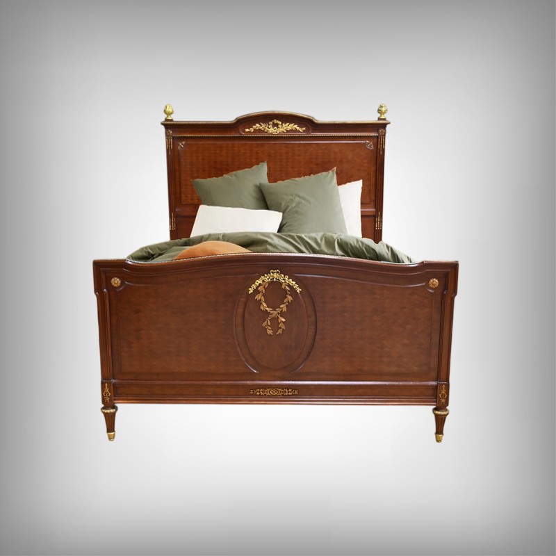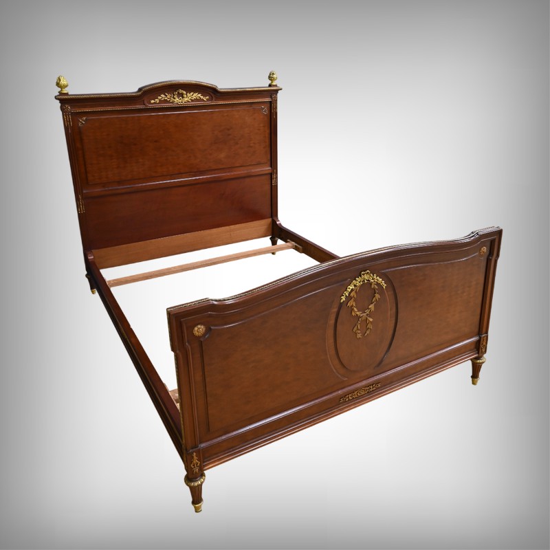 Ce magnifique lit en acajou, datant des années 1920, incarne avec finesse l’esthétique du style Louis XVI.