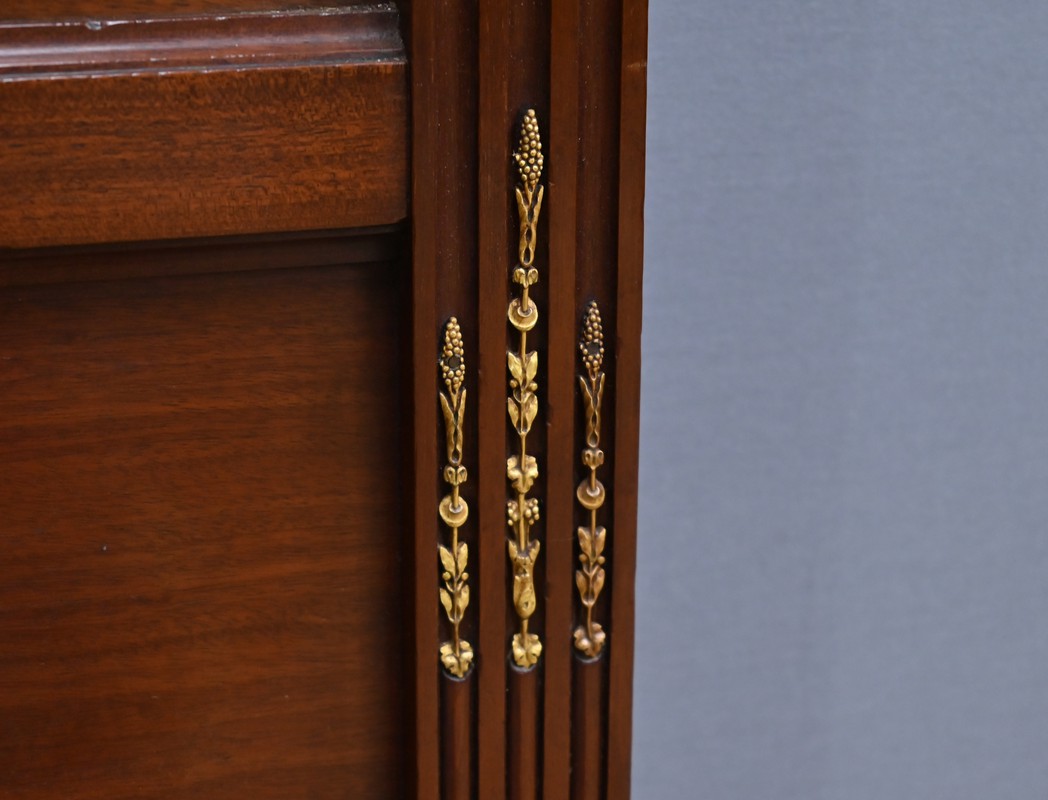 Enfin, l’ensemble repose sur quatre pieds toupies cannelés, terminés par des sabots en bronze, garantissant stabilité et prestance.