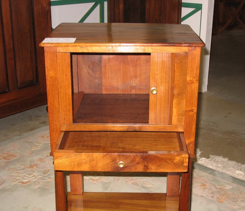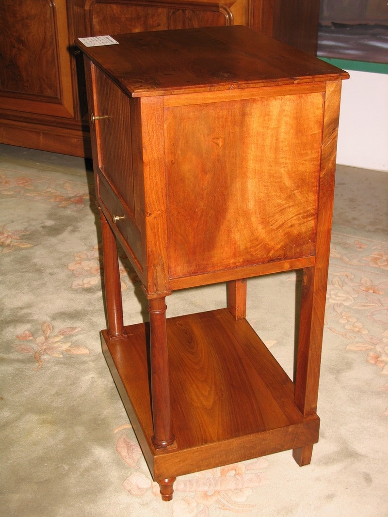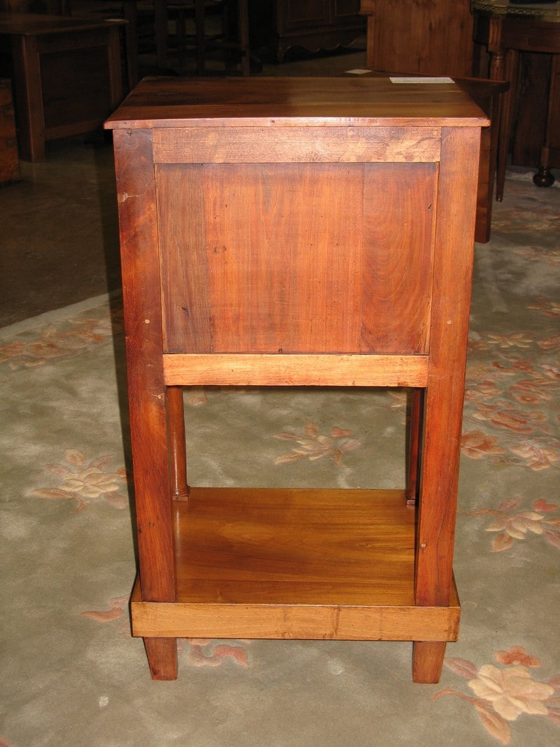 Chevet Empire en Noyer ouvrant par une porte à rideau et 1 petit tiroir. Tablette en partie basse. Époque : première moitié du XIXe (1830/1840)