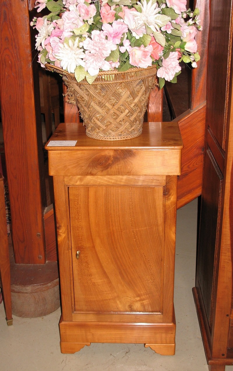 Chevet en merisier ouvrant à un tiroir et une grande porte.