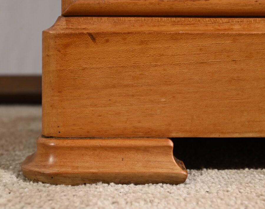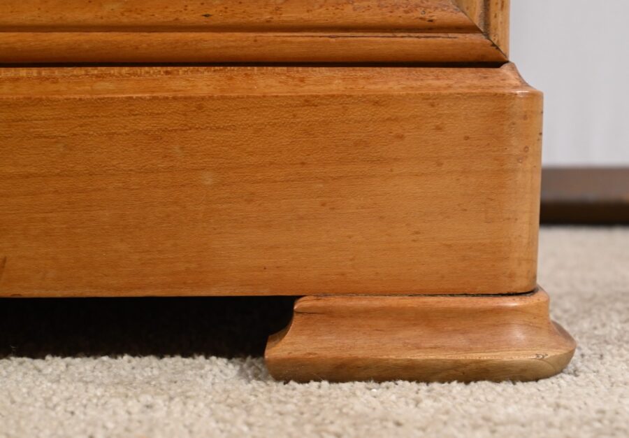 L’ensemble repose sur une plinthe à gorge se terminant par des pieds plus moulurés à l’avant qu’à l’arrière.