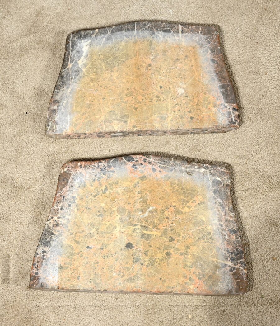 Les pieds de ces chevets sont galbés et s’affinent vers le bas. En partie haute, ils sont ornés de chutes élancées et se terminent par des sabots en bronze en partie basse.