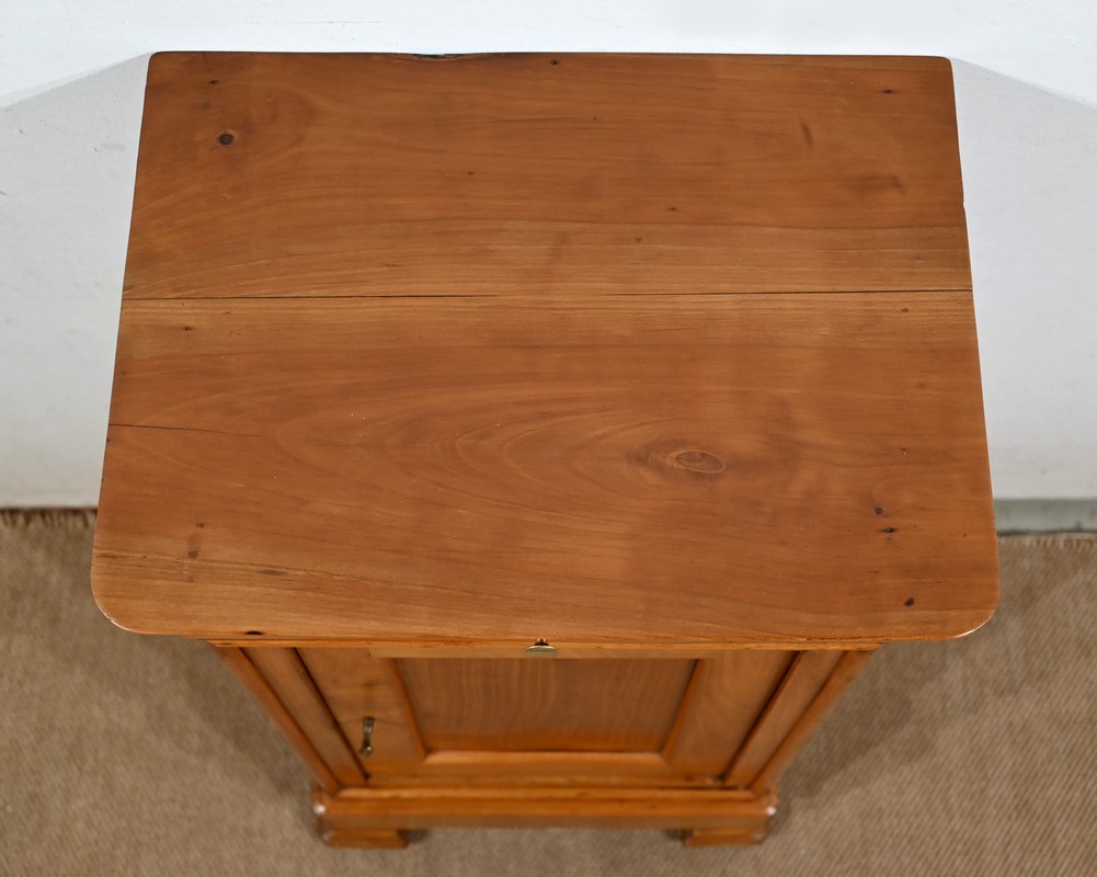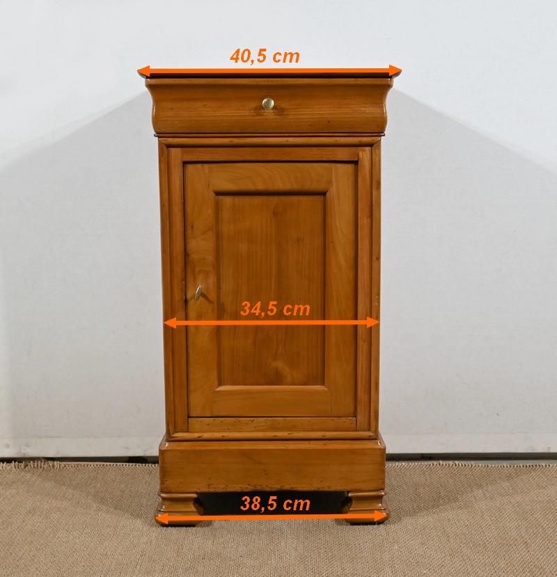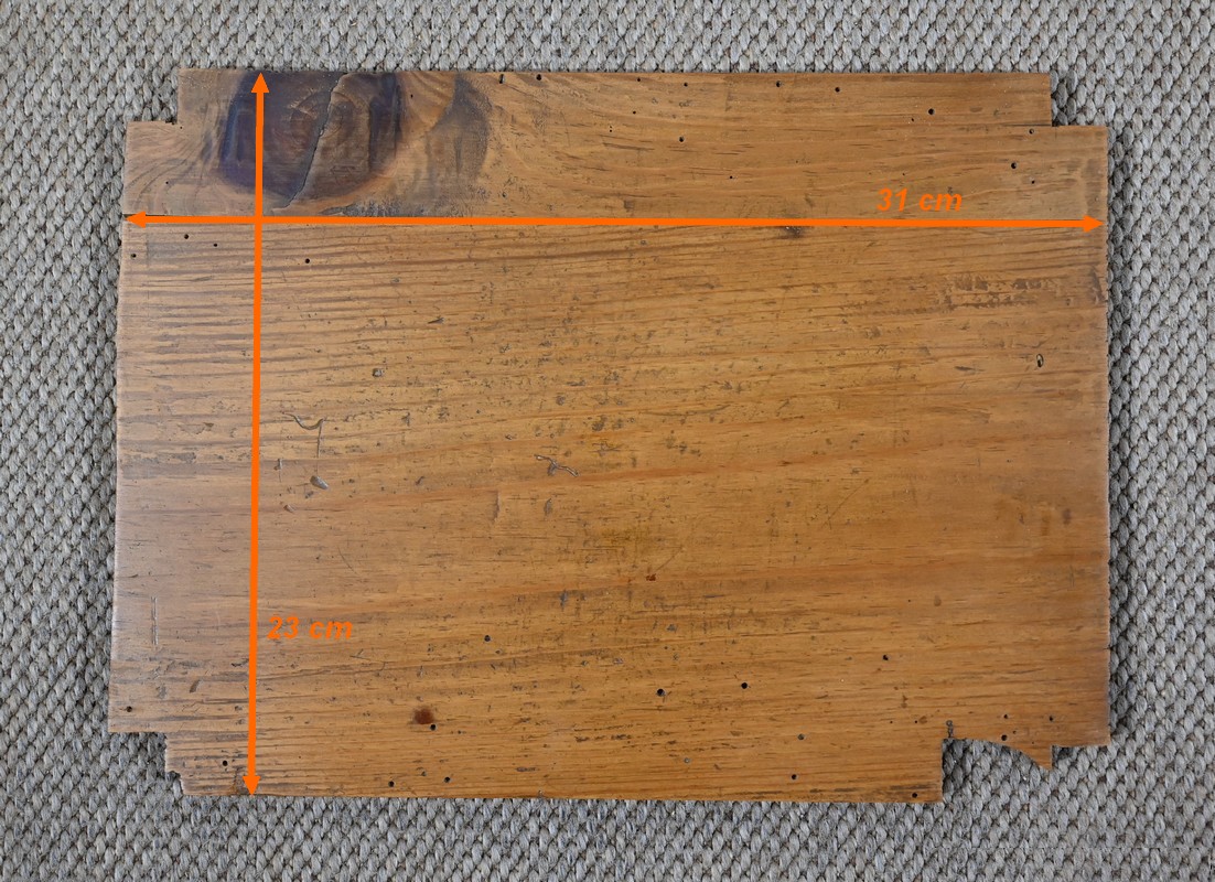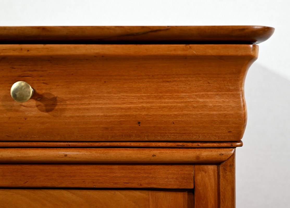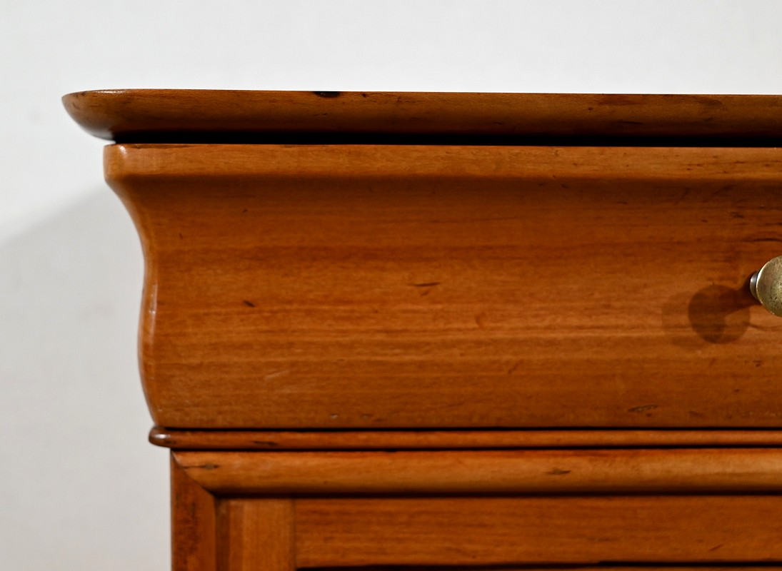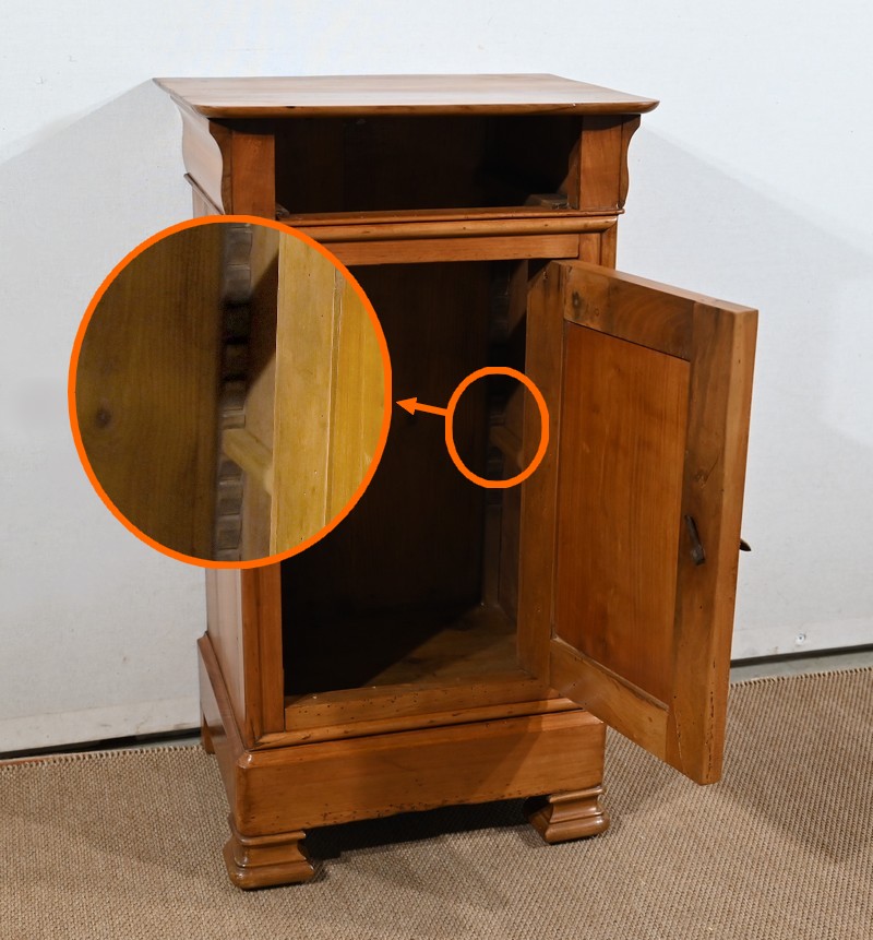 Ce chevet en merisier massif présente un dessus composé de deux planches bien jointives.