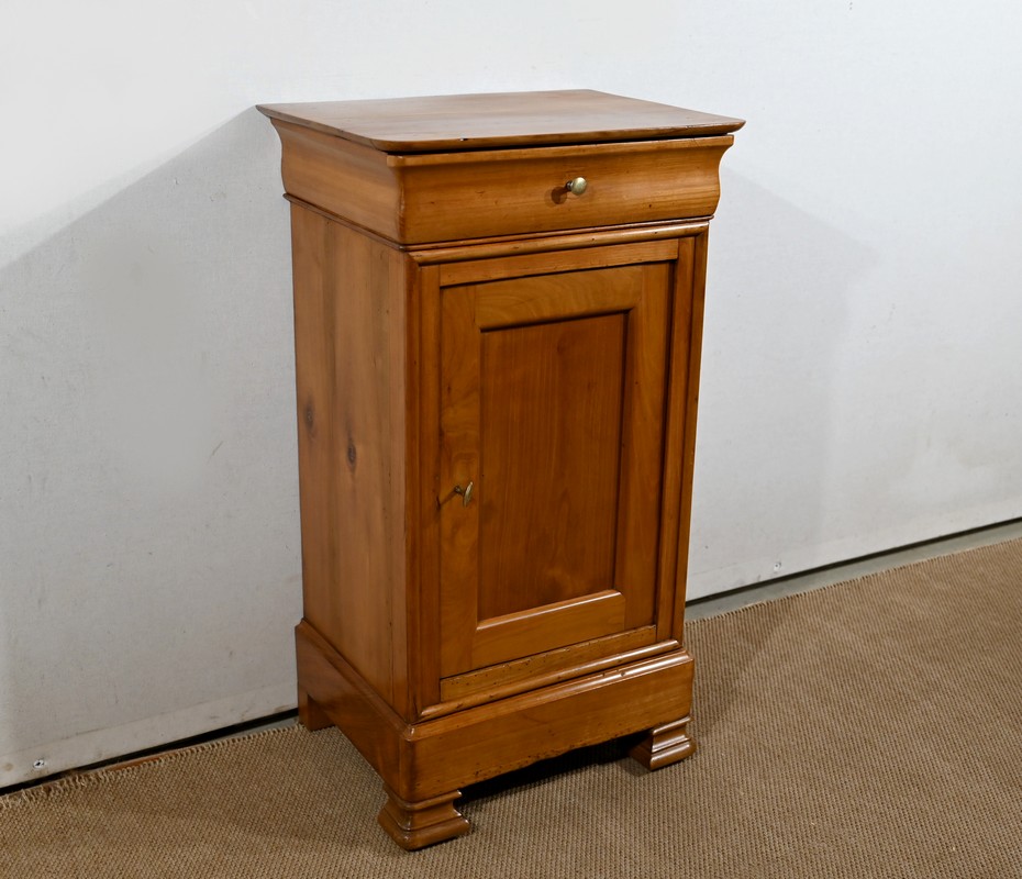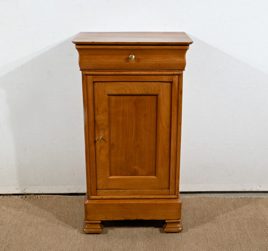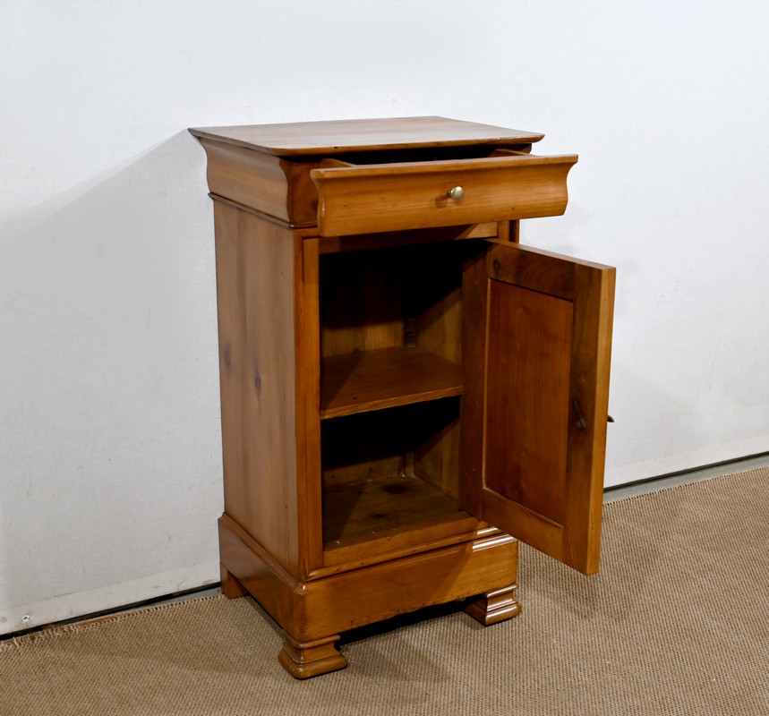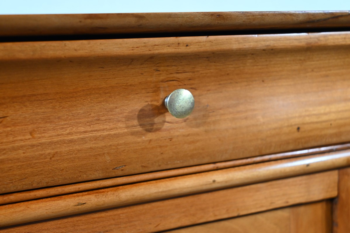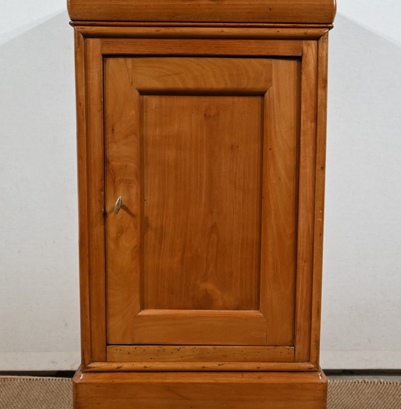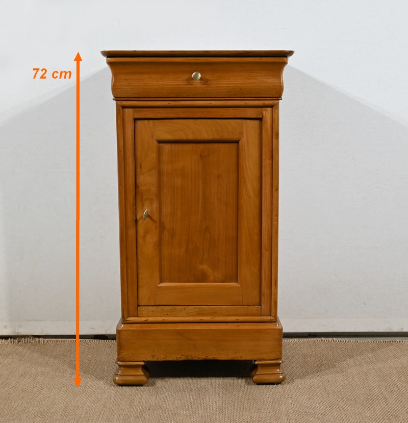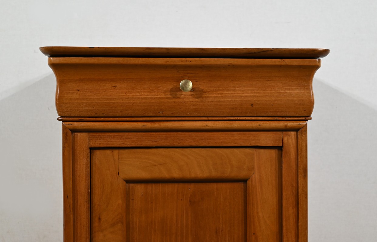Ce chevet en merisier massif présente un dessus composé de deux planches bien jointives.