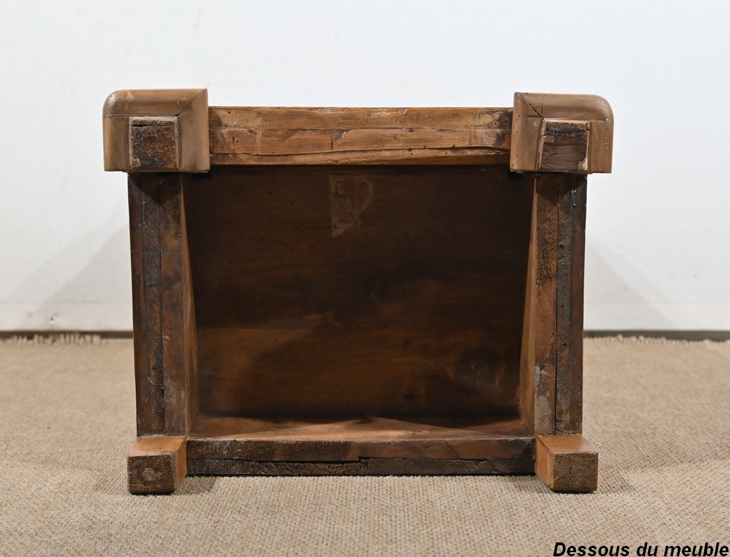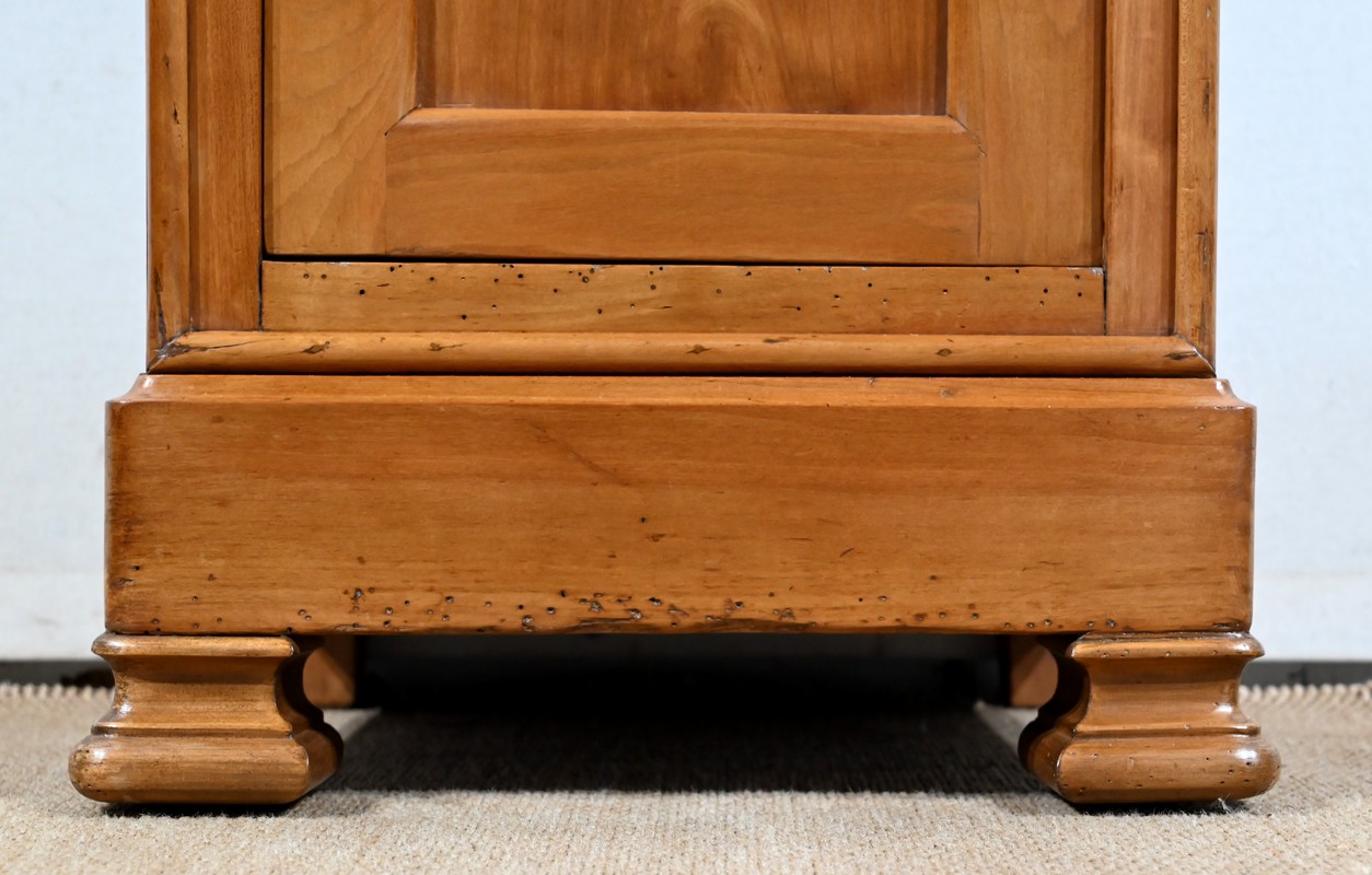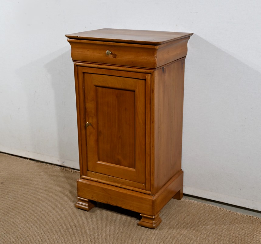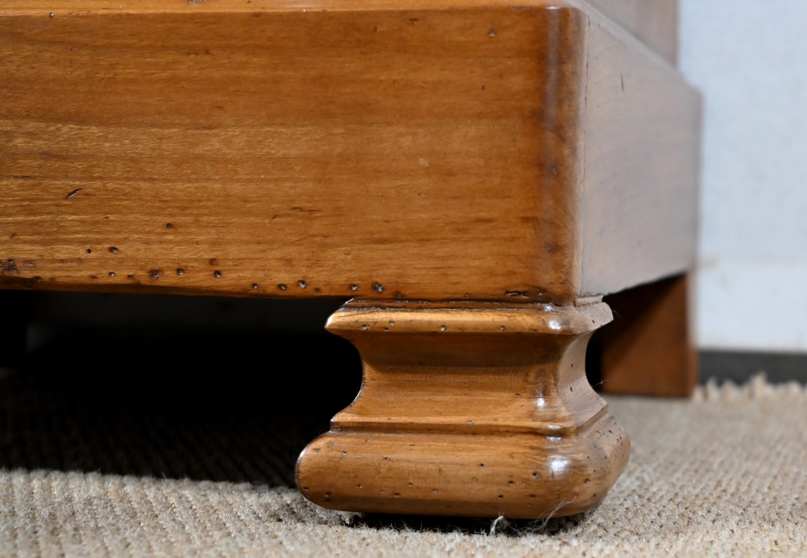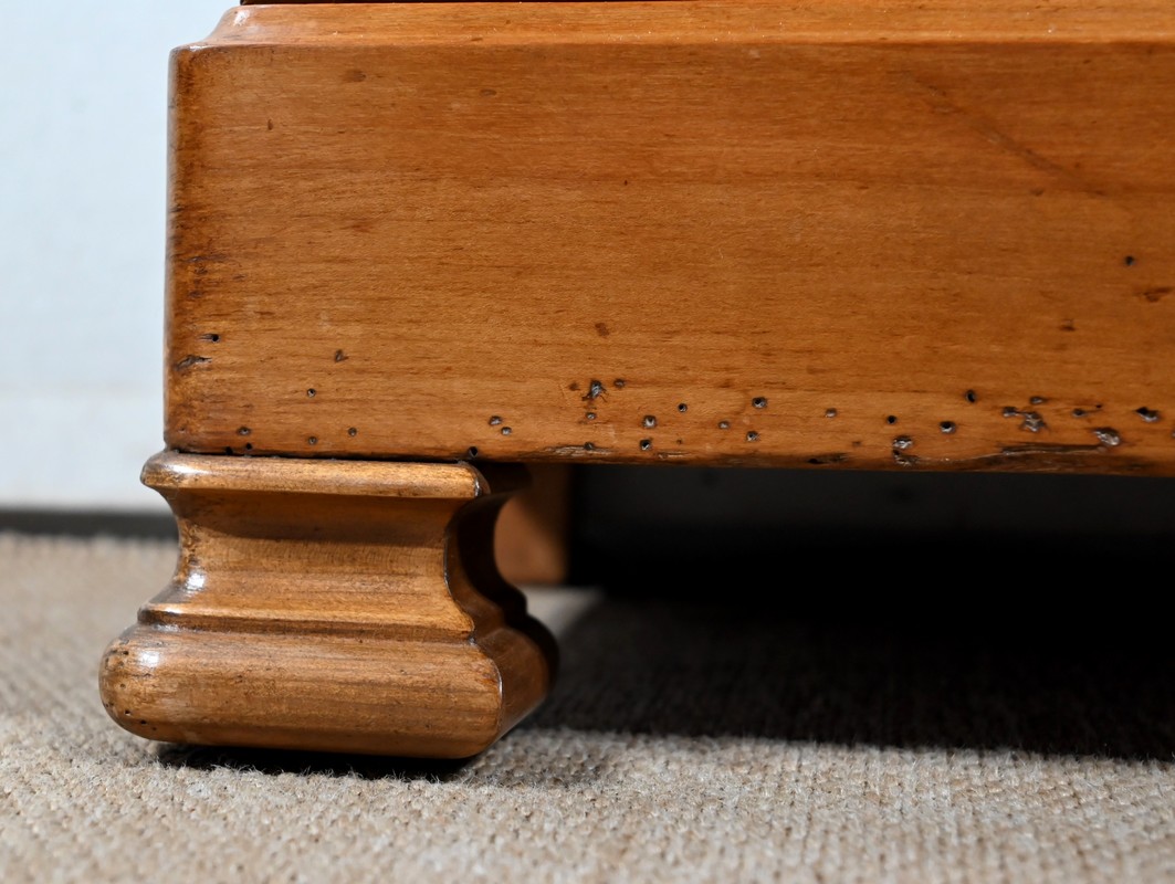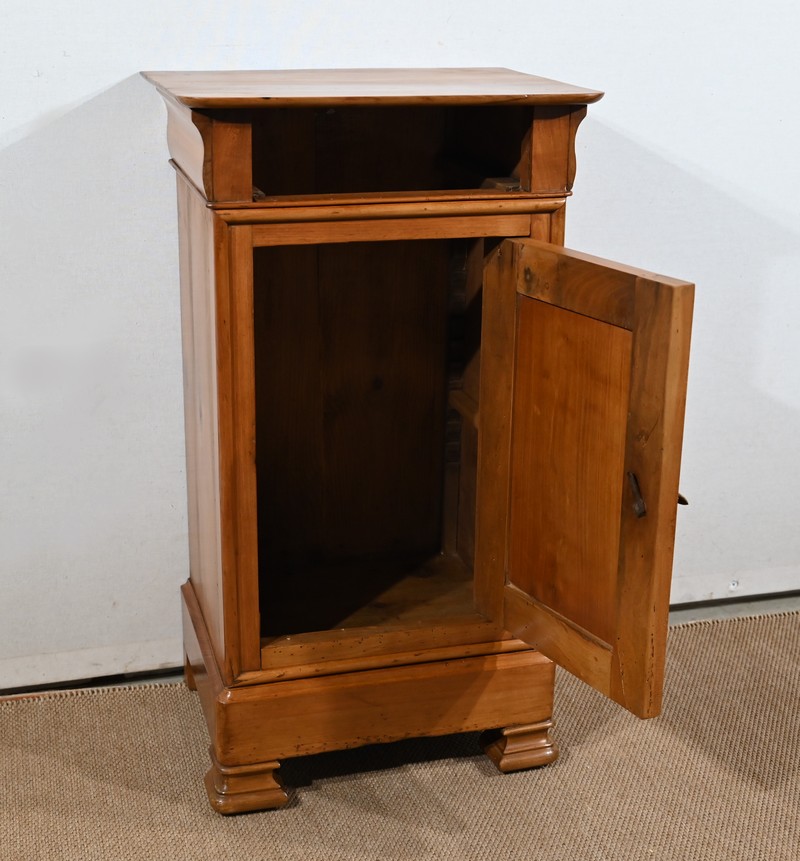 Ce chevet en merisier massif présente un dessus composé de deux planches bien jointives.