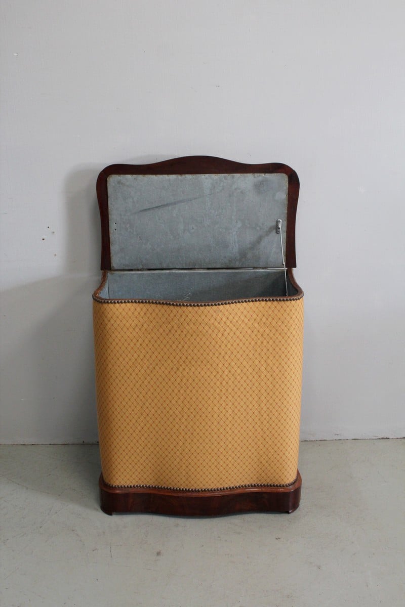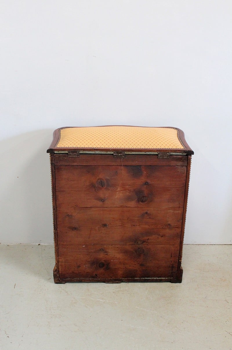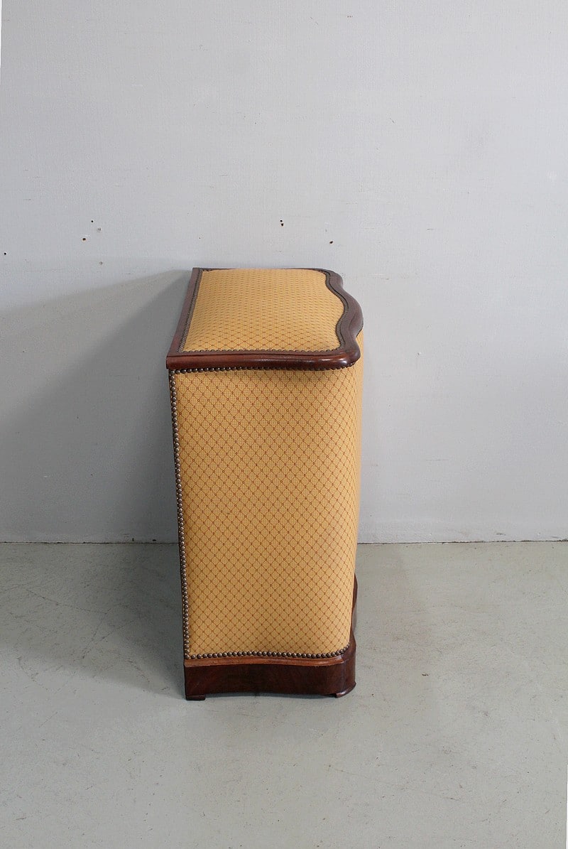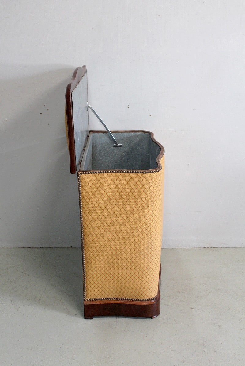 Coffre à linge Napoléon III matelassé en Acajou massif et placage de ronce d’Acajou.