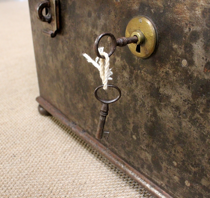 Ce coffre aux lignes sobres a un poids important indispensable pour la stabilité à bord des navires de l’époque.