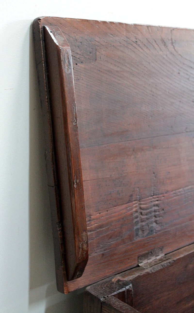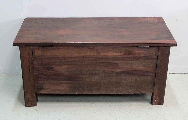 Beau coffre solide en châtaigner ouvrant par le dessus pouvant faire office de banc.