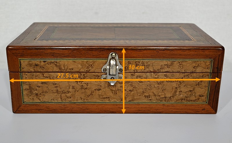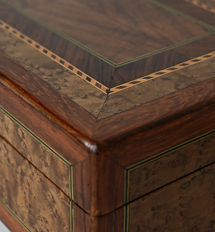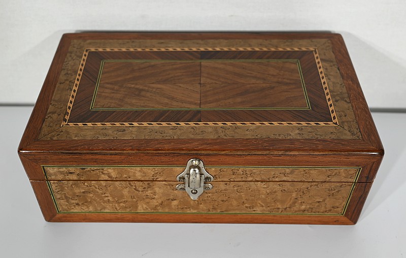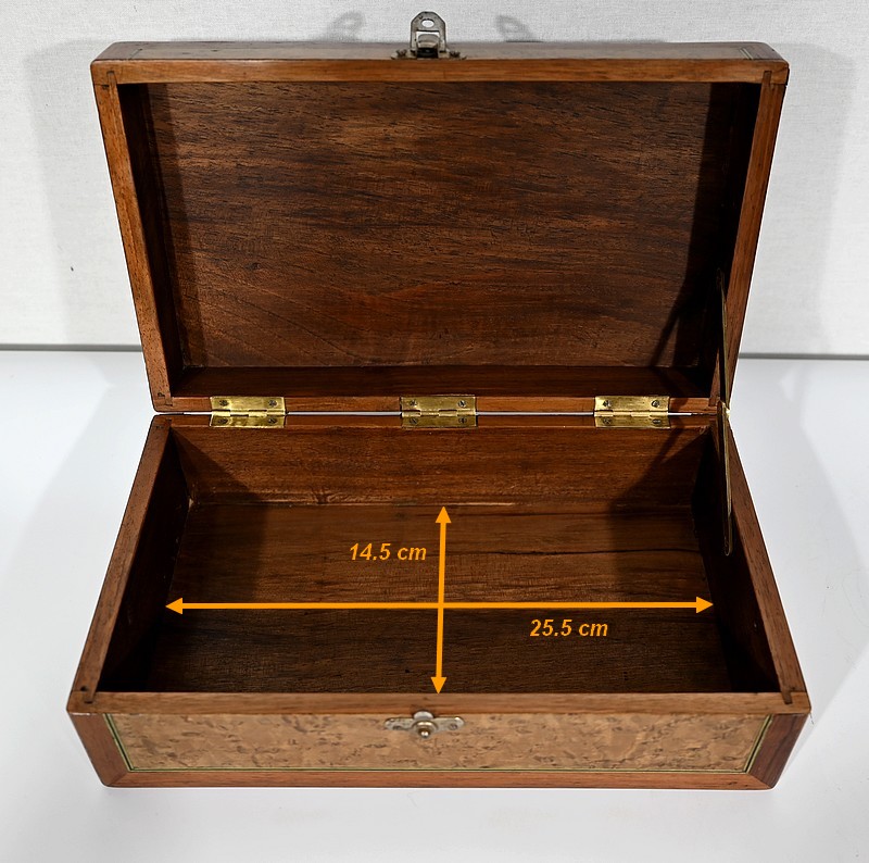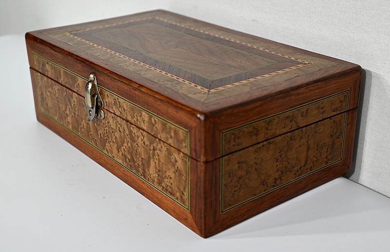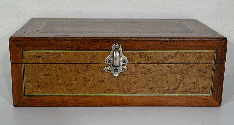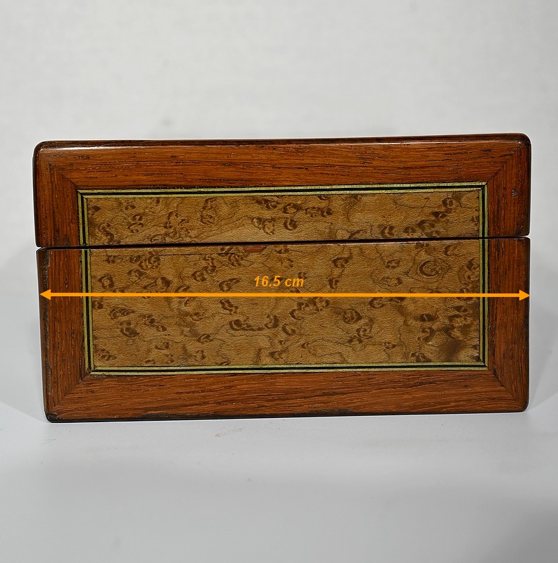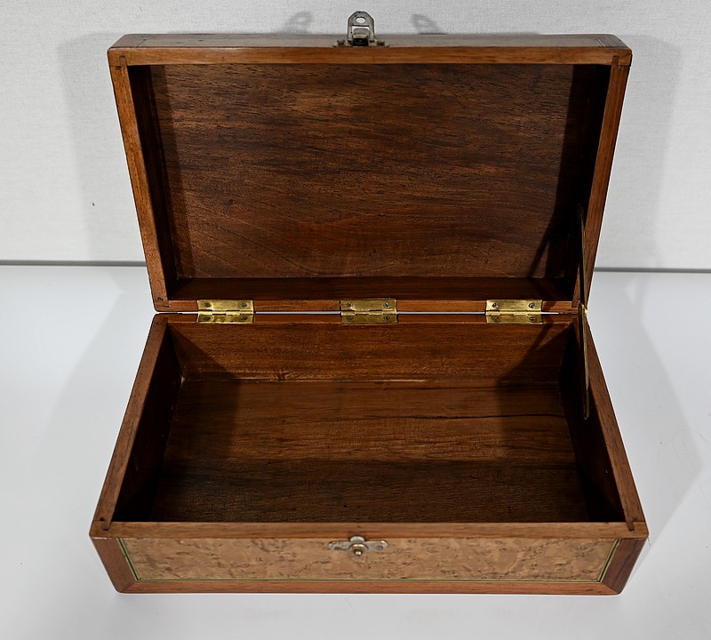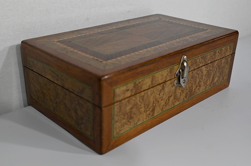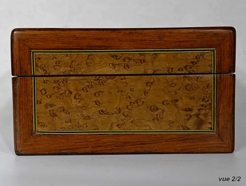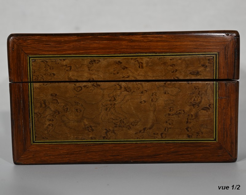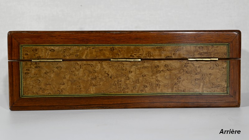 Chacun des quatre faces de ce coffret est constituée de loupe de thuya, soulignée par ce même filet de bois teinté.