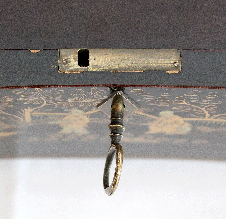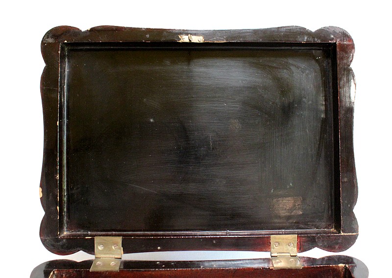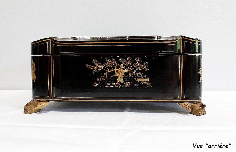 Joli Coffret de section Rectangulaire, en Bois à Laque Noire, conçu dans le goût Asiatique dans le courant du XIXe siècle.