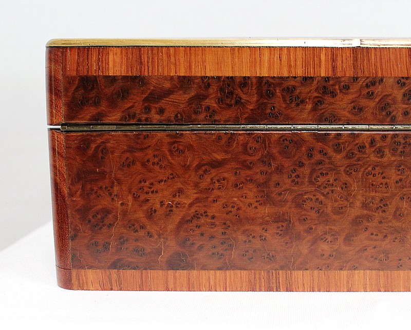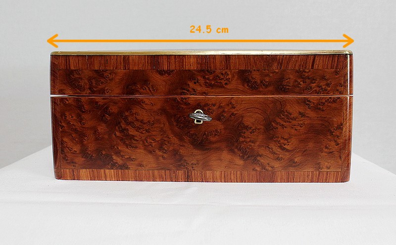 Élégante petite Boîte Rectangulaire conçue dans les années 1900 et composée sur l’ensemble de sa structure d’un Fin Placage de Loupe de Thuya.
