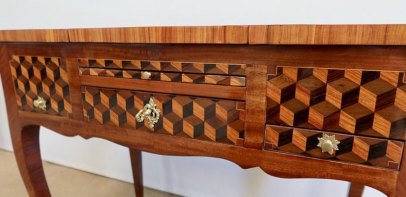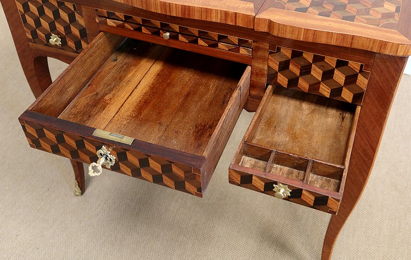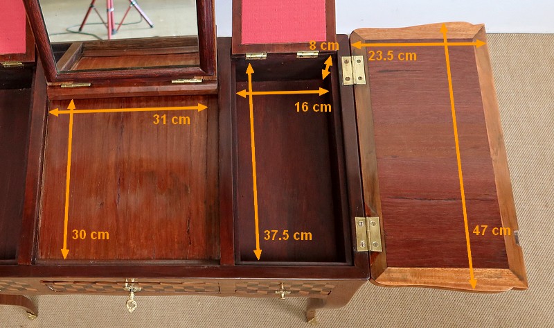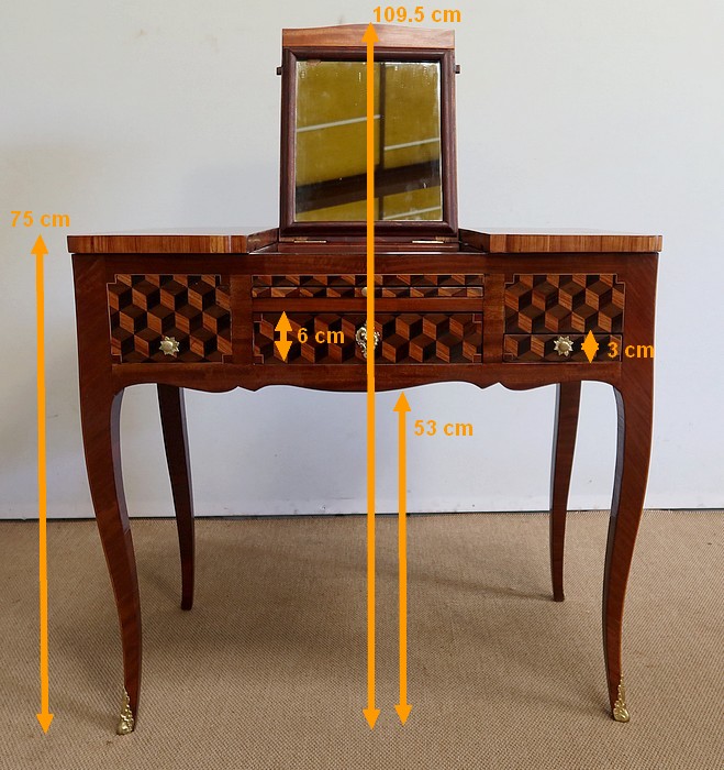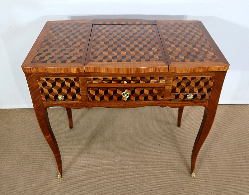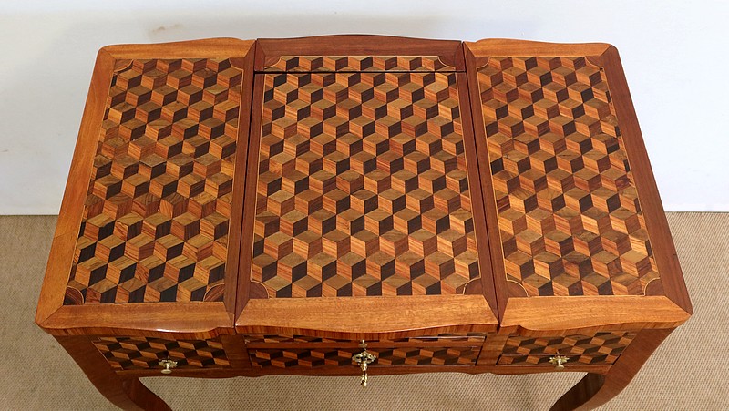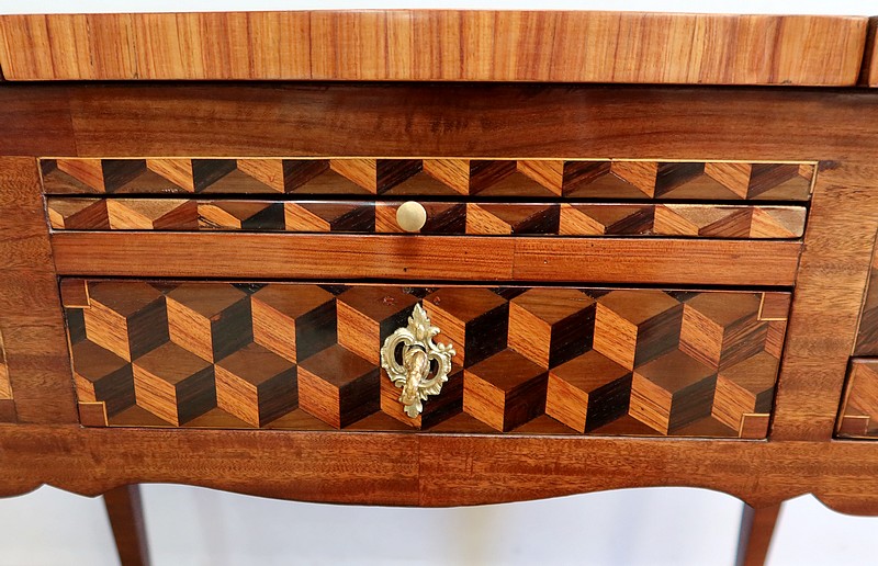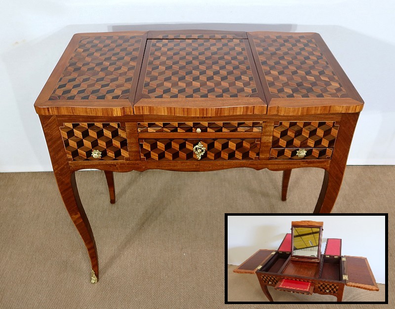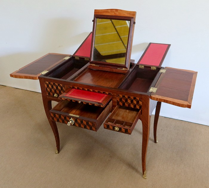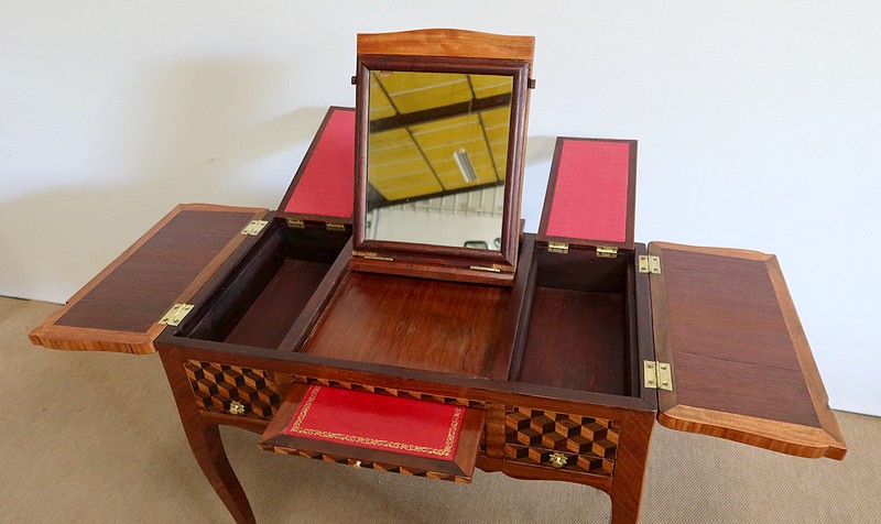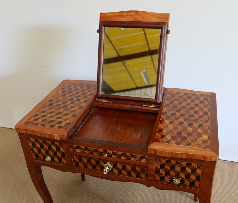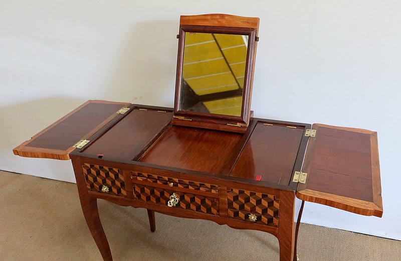 Coiffeuse en Marqueteries de Bois divers, époque Transition Louis XV / Louis XVI – XVIIIe