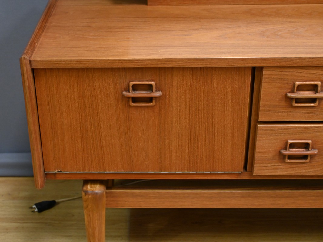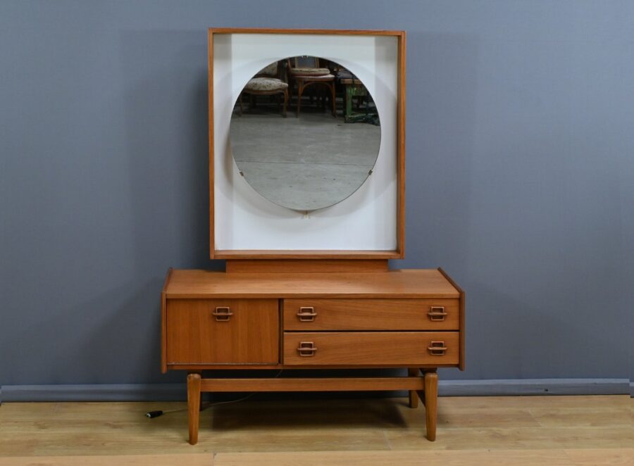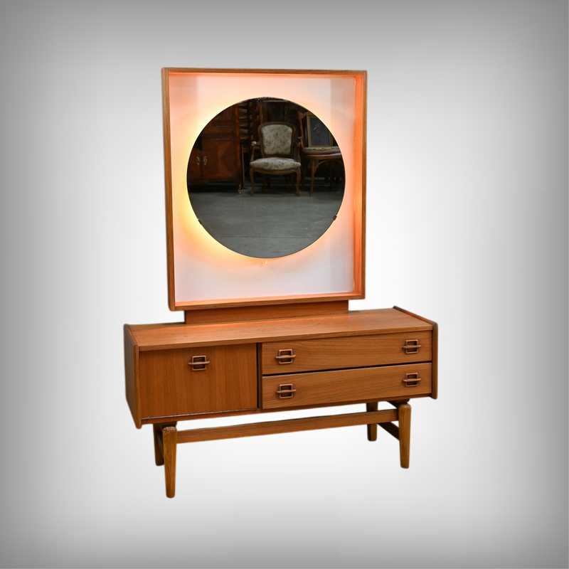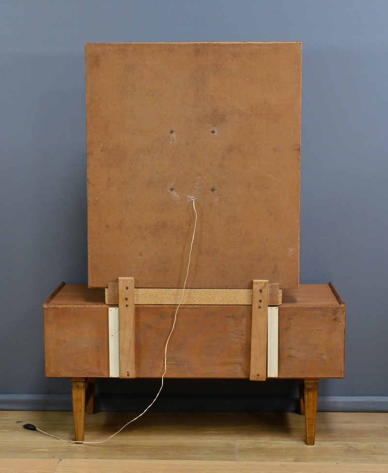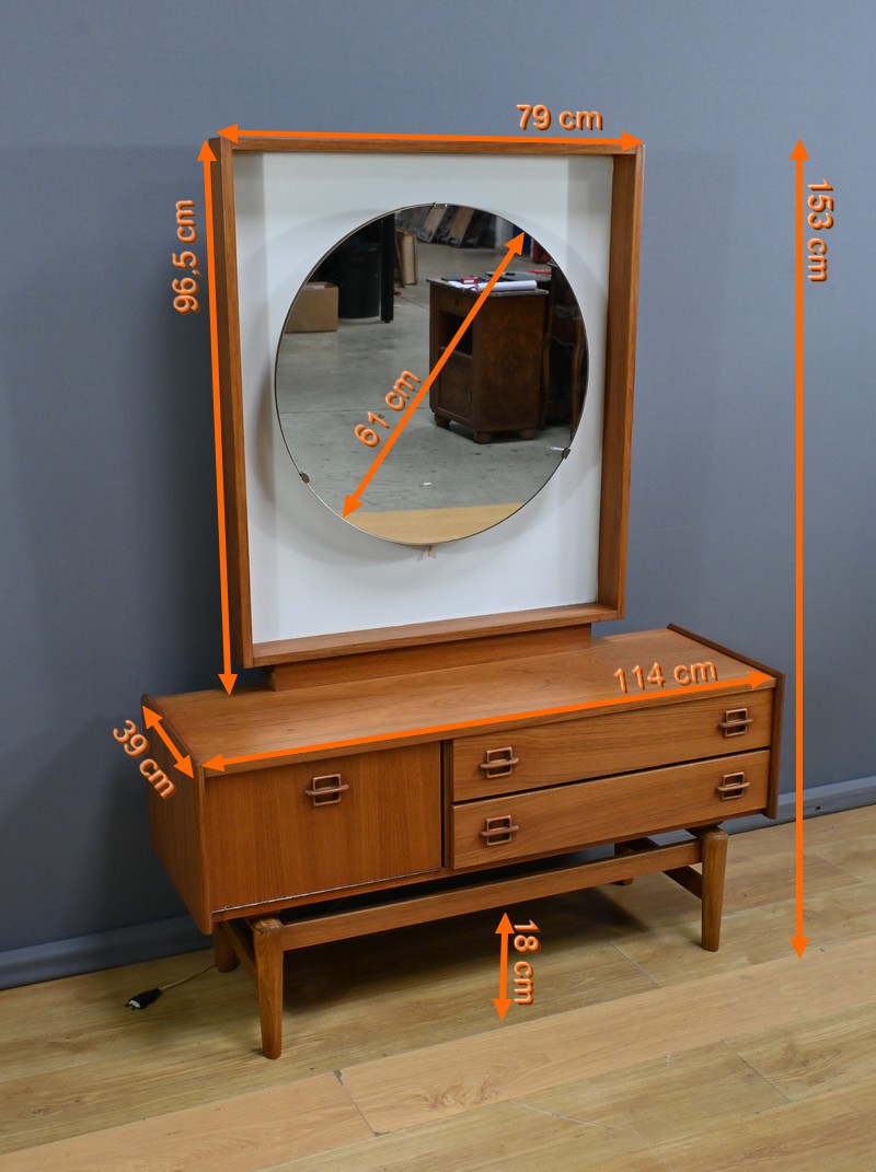 À la fois esthétique et pratique, cette coiffeuse incarne l’esprit du mobilier des années 1960 : un équilibre subtil entre simplicité, fonctionnalité et raffinement.