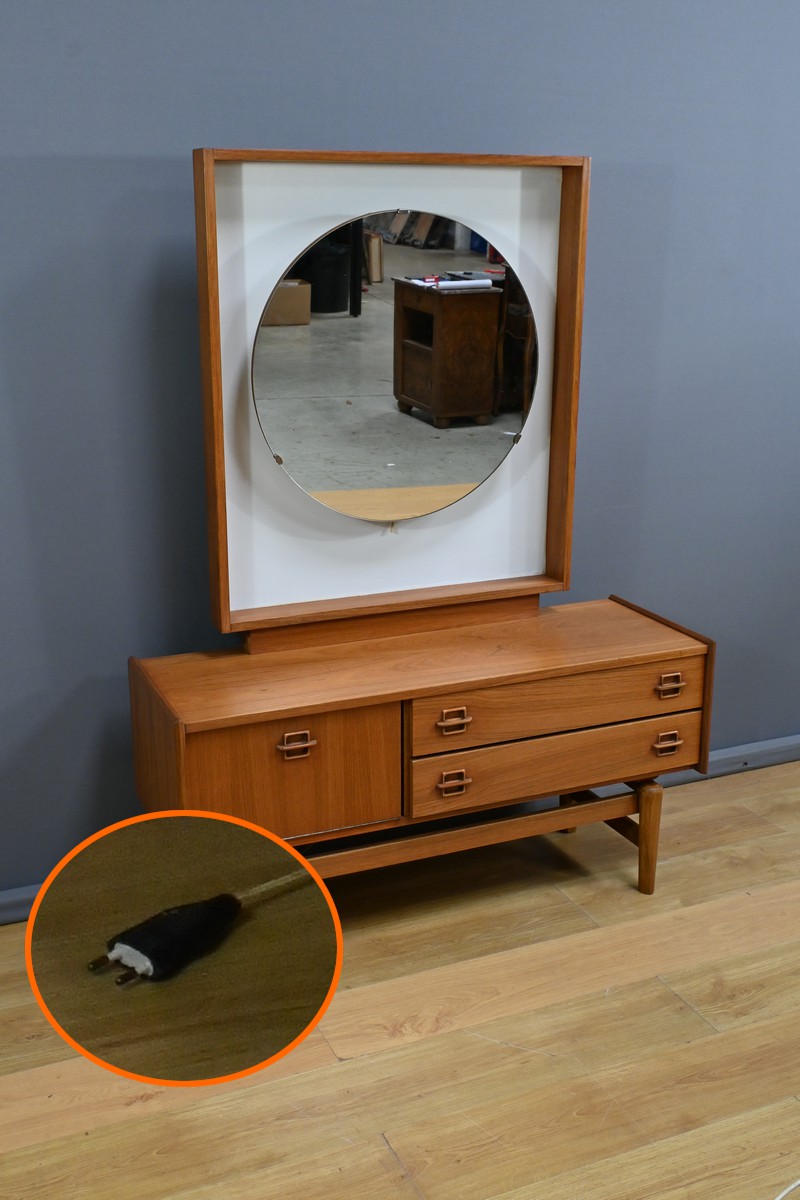 Ce détail, rare pour l’époque, apporte un confort d’utilisation optimal, permettant de profiter d’une luminosité idéale pour les routines de beauté.