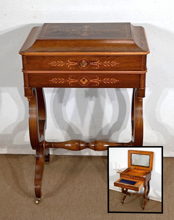 Petite Coiffeuse Ecritoire en Palissandre de Rio, époque Charles X – Début XIXe