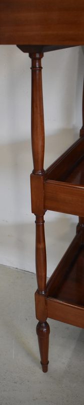 Ce Meuble est monté à Queue d’Aronde, et l’estampillage « Escalier de Cristal Paris » sous son dernier plateau atteste qu’il a bénéficié d’une Grande Qualité de Travail et de Bois. En effet, c’est en 1870 que la Maison Française étend sa fabrication aux Meubles, majoritairement des copies du XVIIIe, d’une Précision d’Exécution telle qu’ils sont régulièrement confondus avec les originaux.