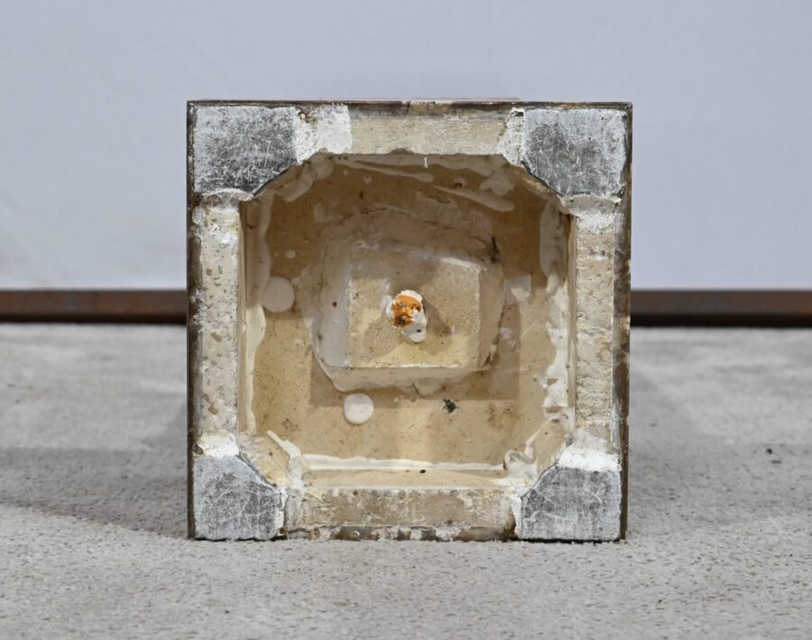 Cet ensemble repose sur une base carrée constituée de plaques de marbre en dégradé.