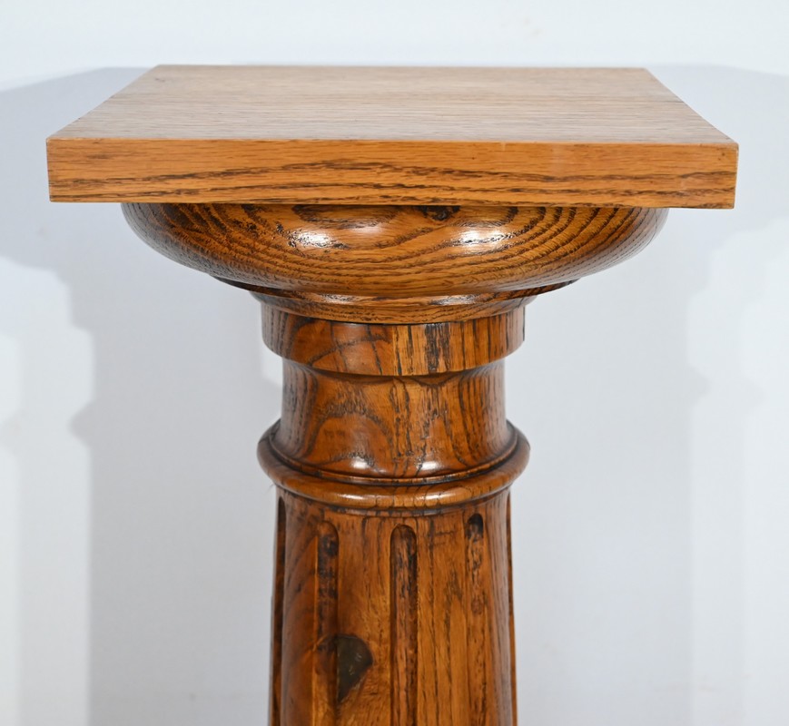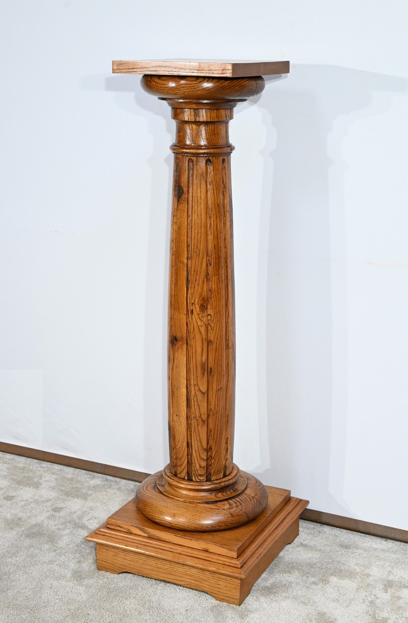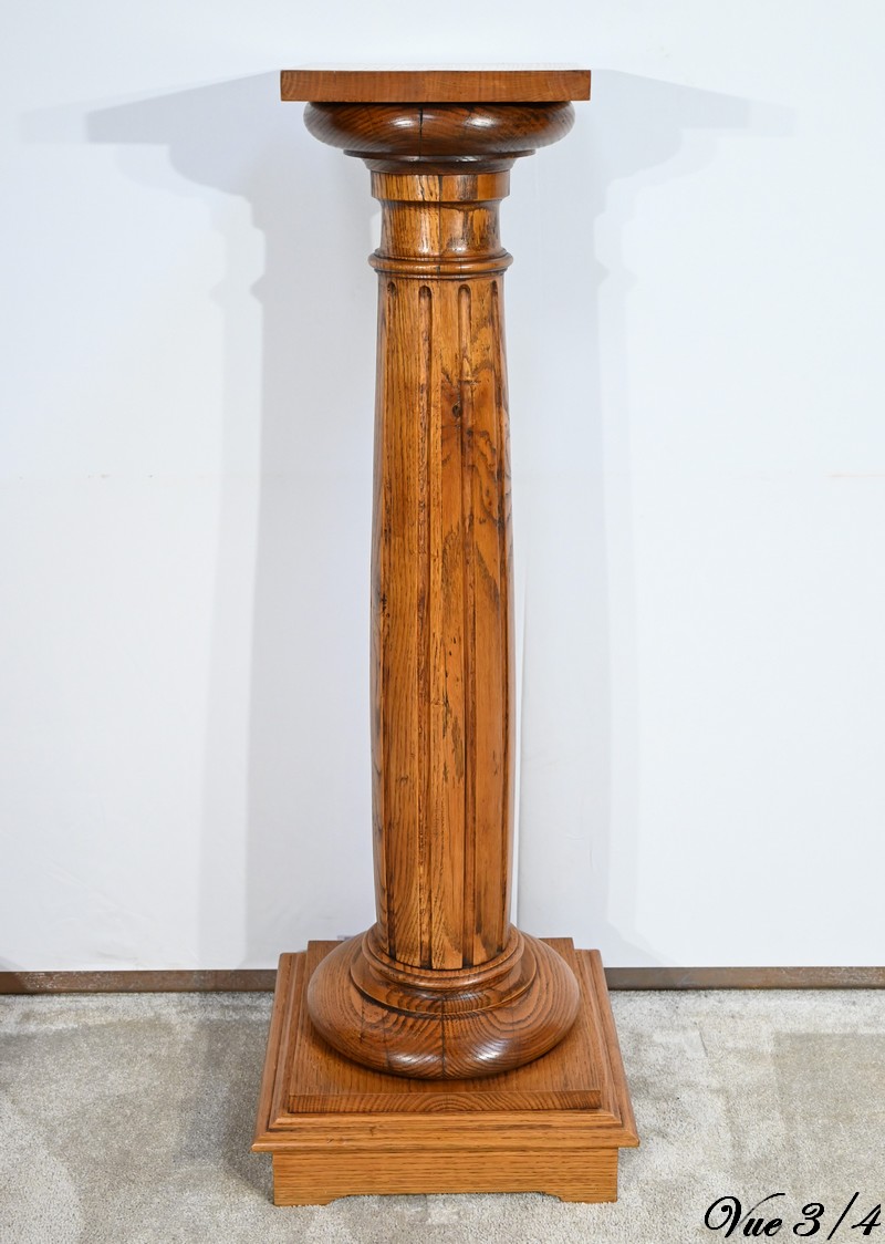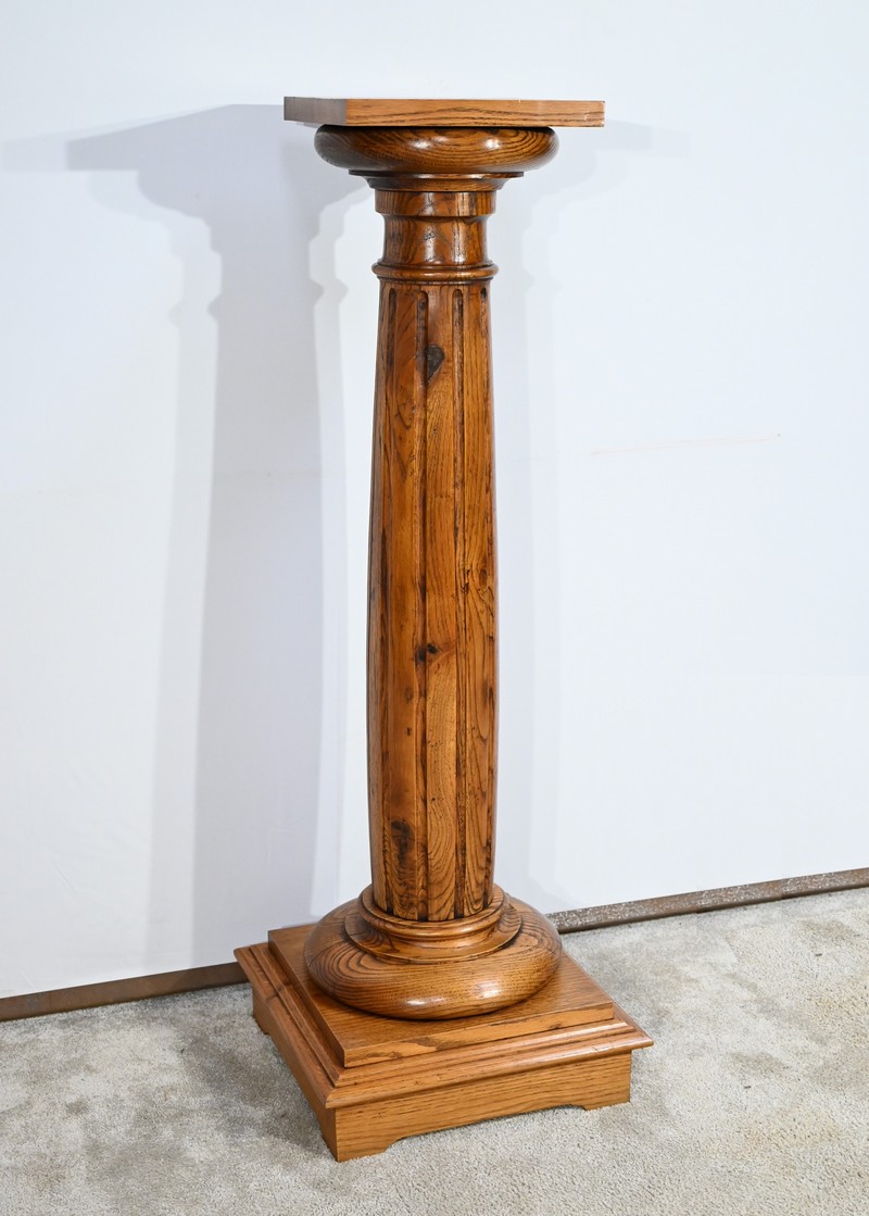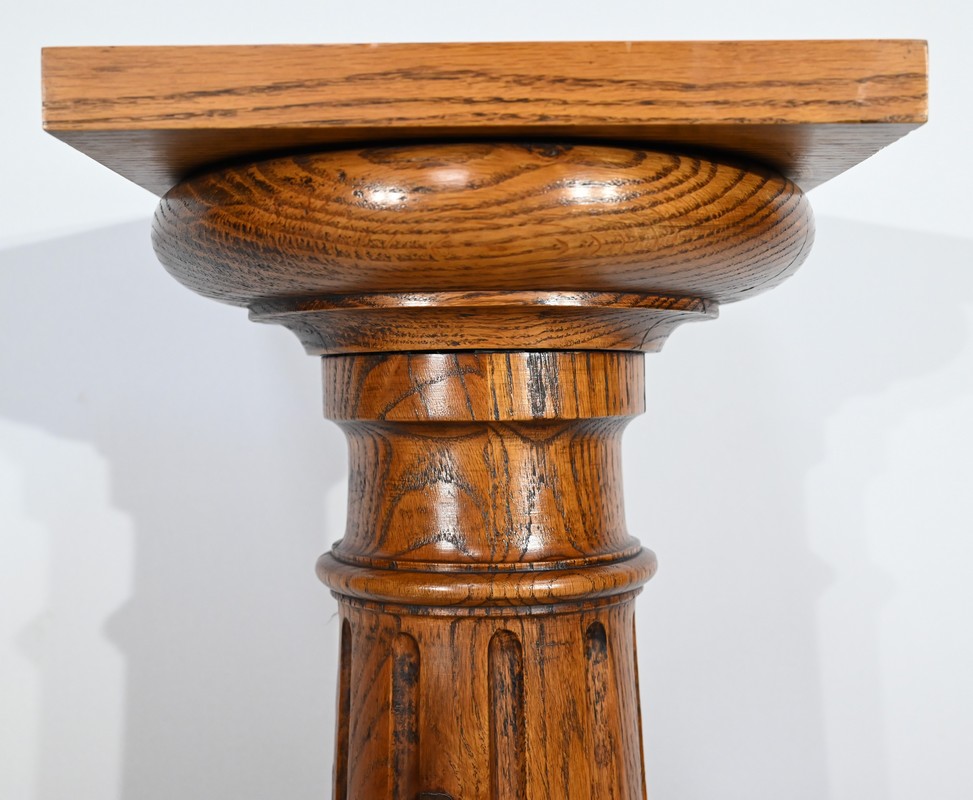 Colonne en chêne massif, à hauteur d’appui, présentant un dessus carré.