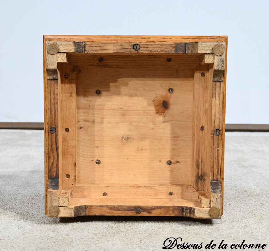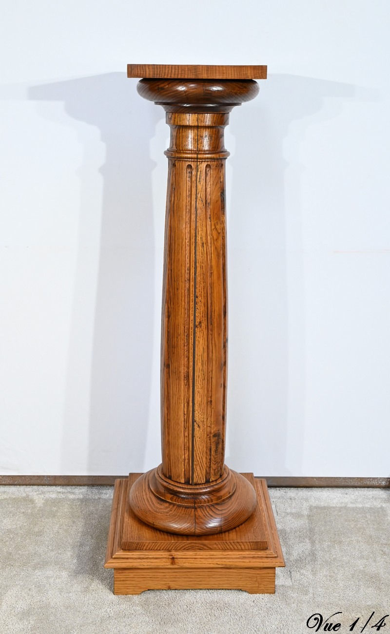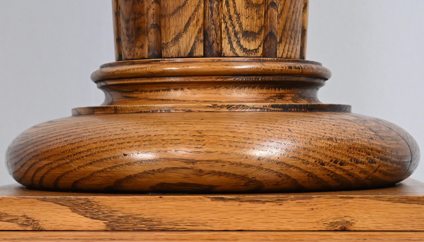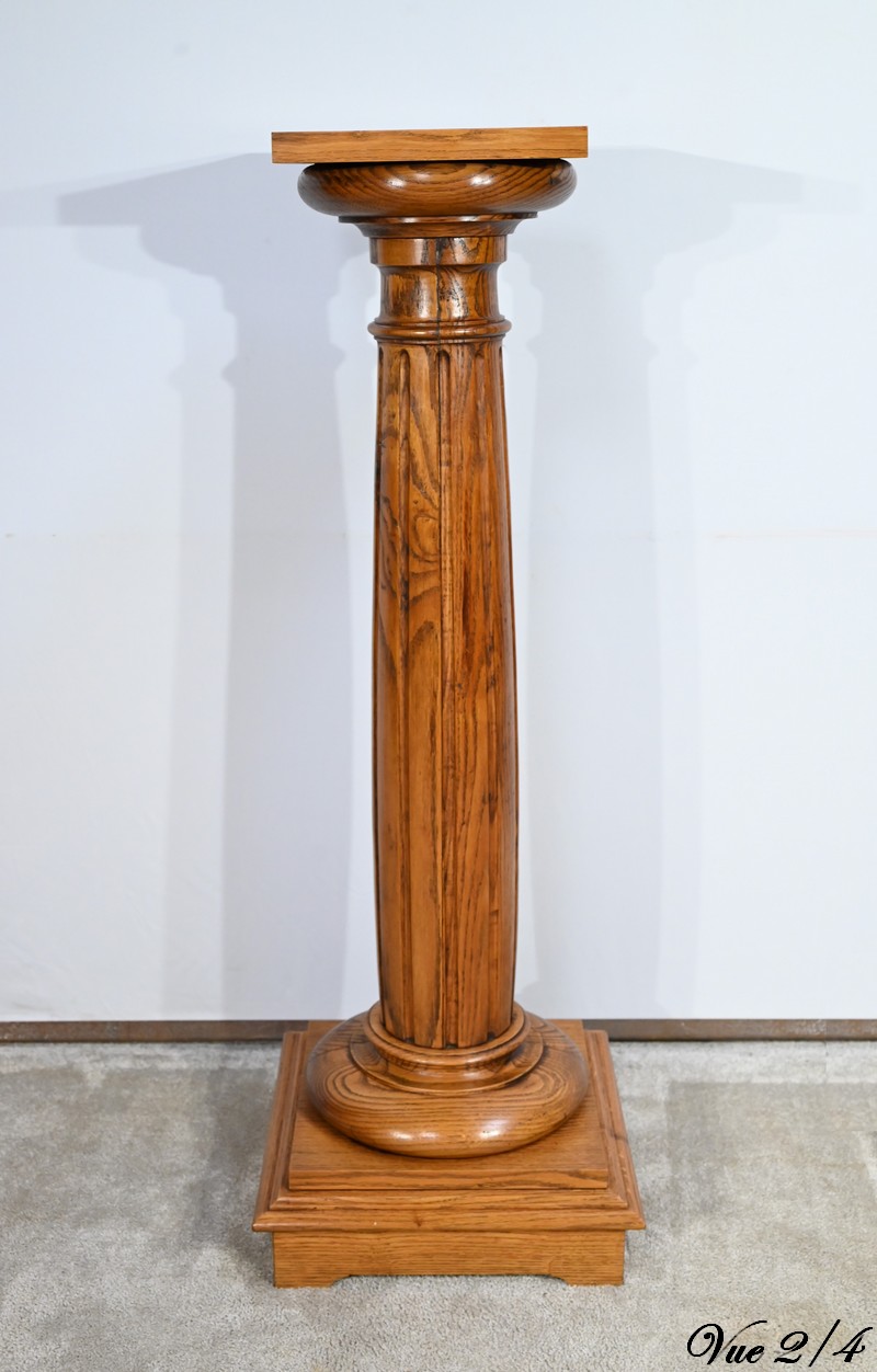 Colonne en chêne massif, à hauteur d’appui, présentant un dessus carré.