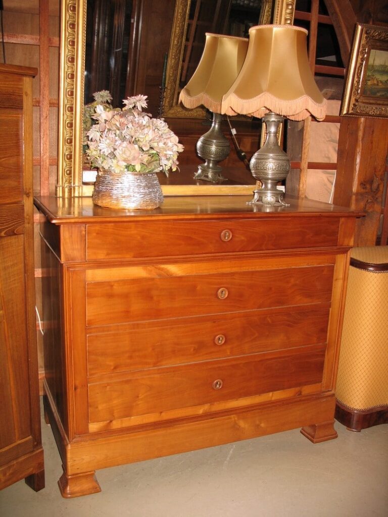 Depuis 50 ans, chaque pièce de mobilier est minutieusement restaurée avec passion dans notre atelier d’ébénisterie.