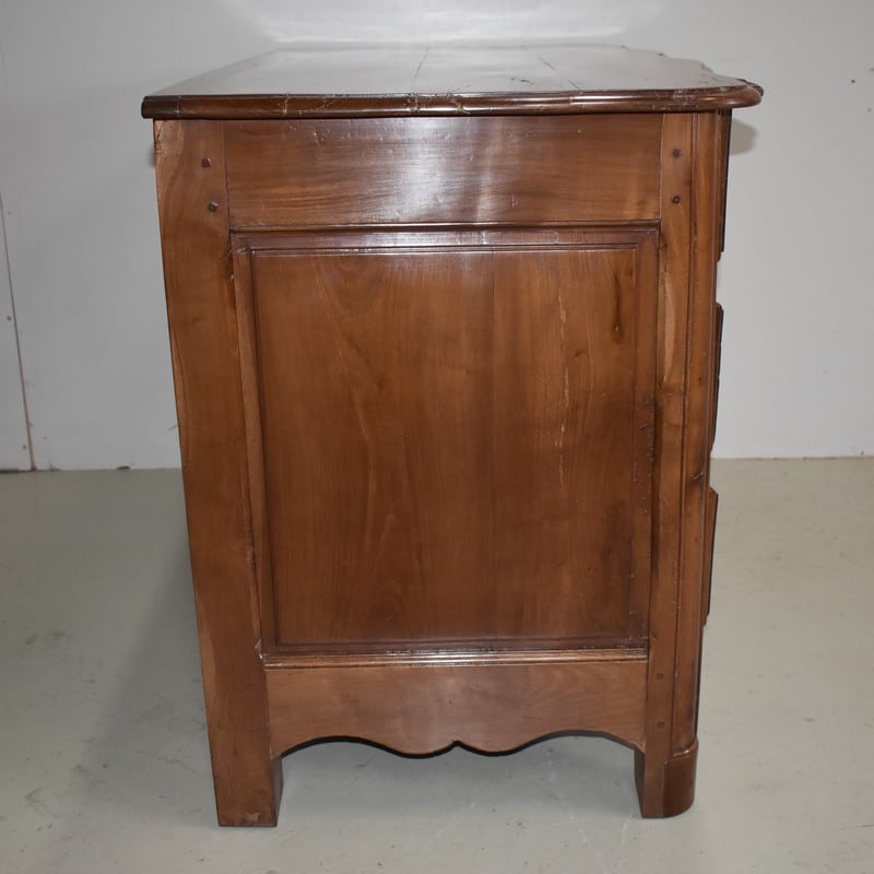 Commode Arbalète Louis XIV en bois fruitiers (merisier et noyer) ouvrant à 3 tiroirs ornés de poignées de tirage et d’entrées de serrures en bronze, d’origine.