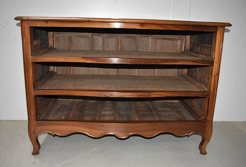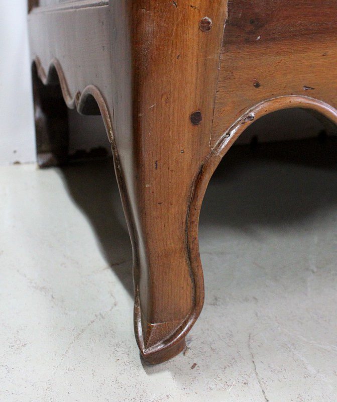 Les montants avant de ce Meuble sont en quart de rond, Cannelés, et terminés en Pieds de Biche. Les pieds de l’arrière sont plus Modestement Découpés.