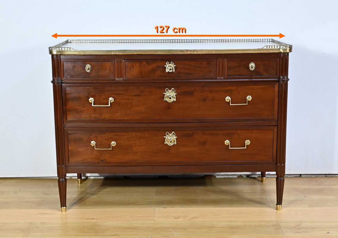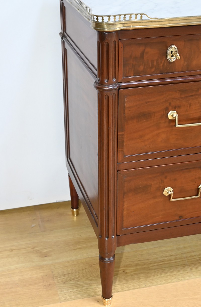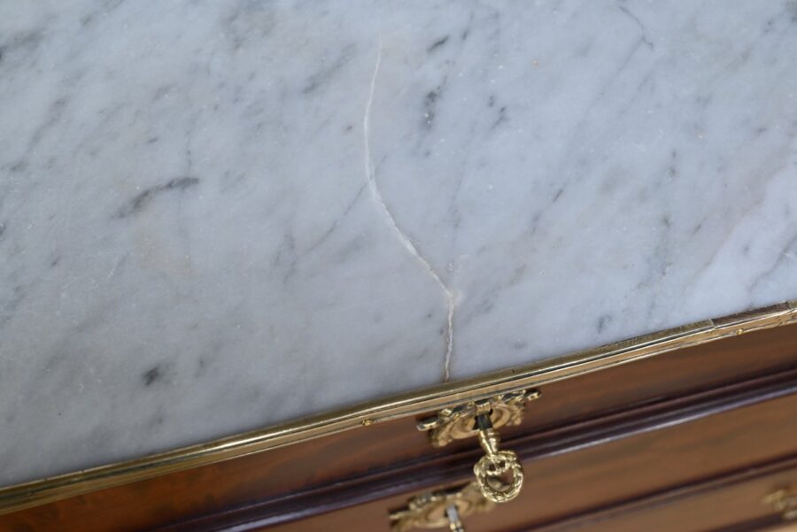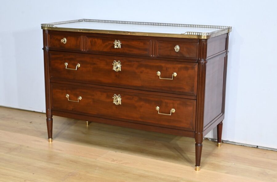 Cette commode représente un bel exemple de la maitrise des ARTisants ébénistes de l’époque Louis XVI par leur savoir-faire et l’attention portée aux détails.