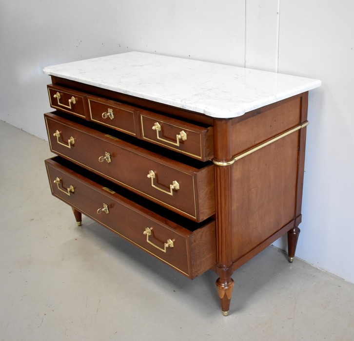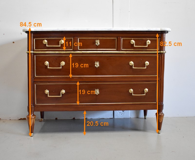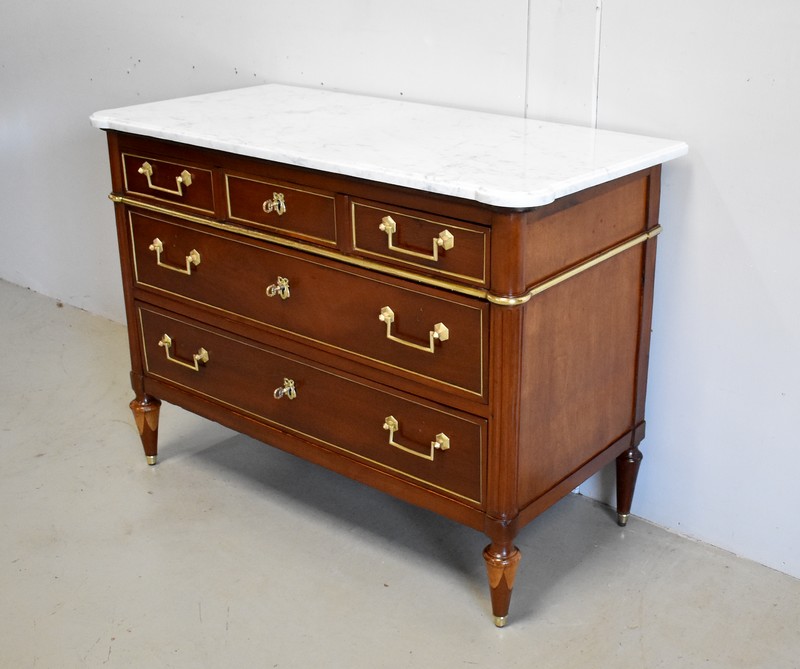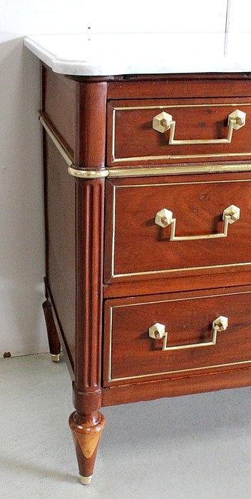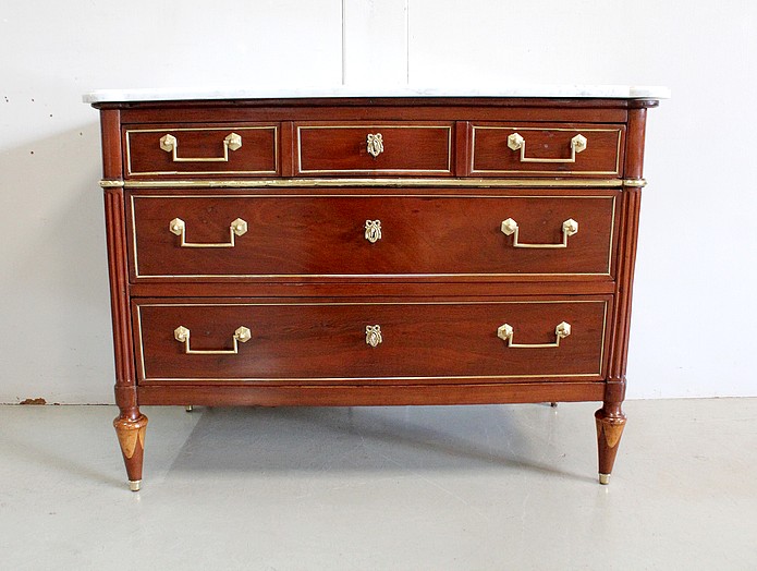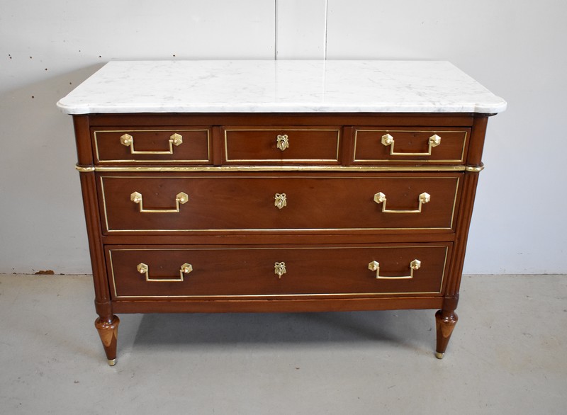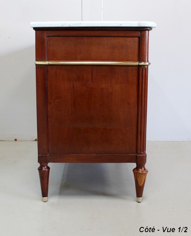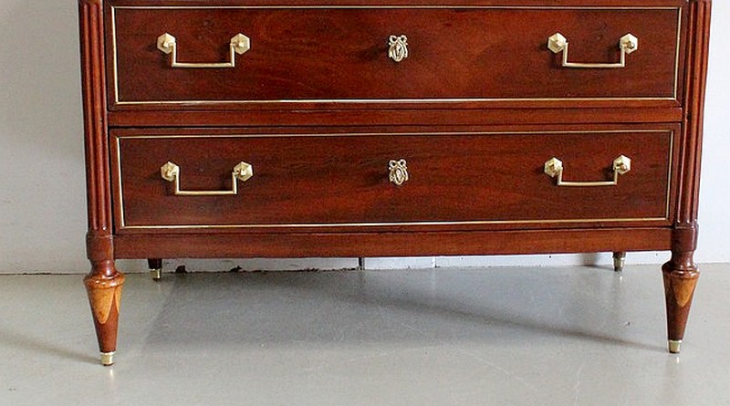 Commode en Acajou massif et plaquage d’Acajou de Cuba, d’époque Louis XVI.